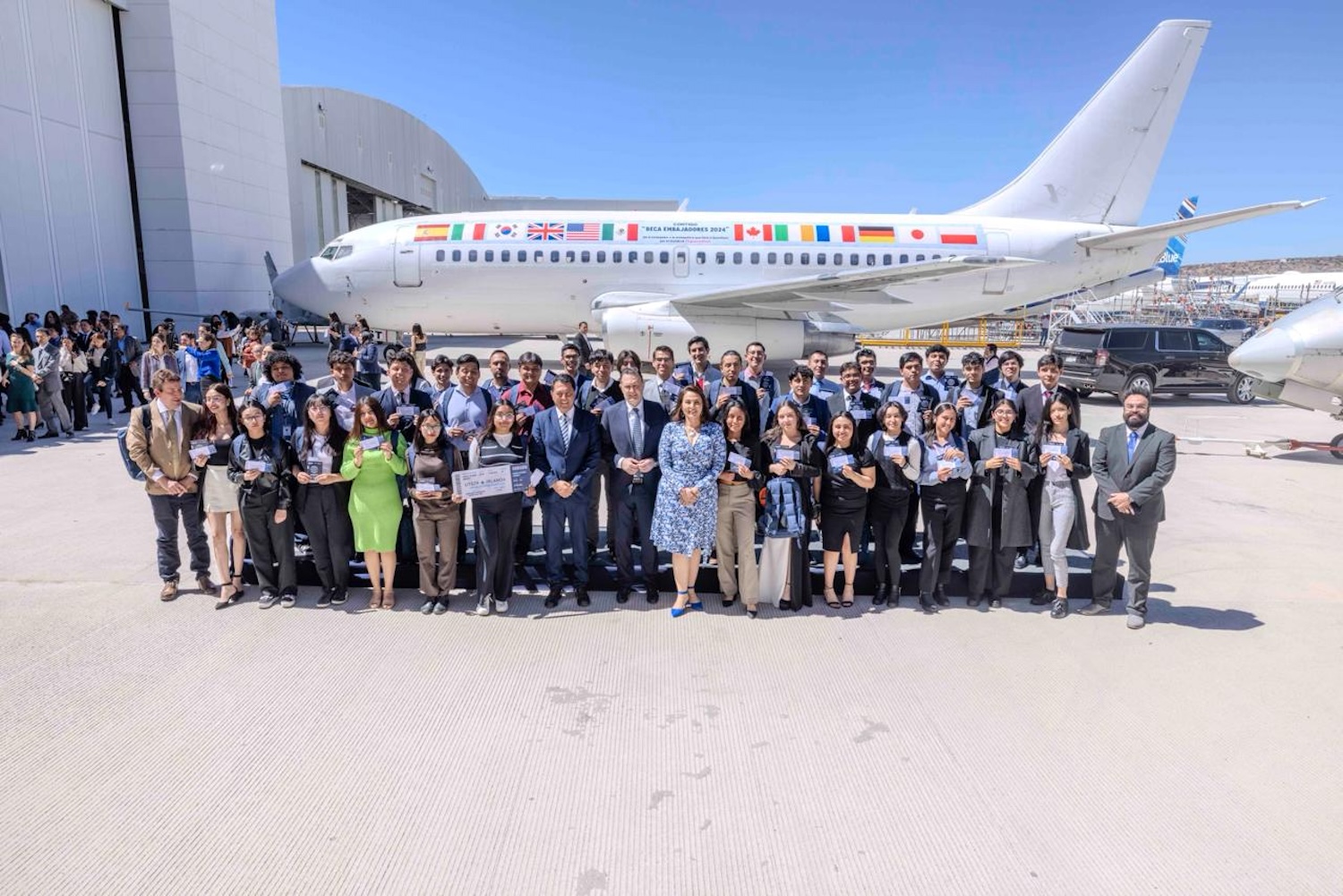 Finalmente, al entregar los pasaportes simbólicos de la Beca Embajadores a los beneficiarios, les pidió recordar que al recibirlos y al integrar esta destacada delegación: Son las personas que representarán al estado.