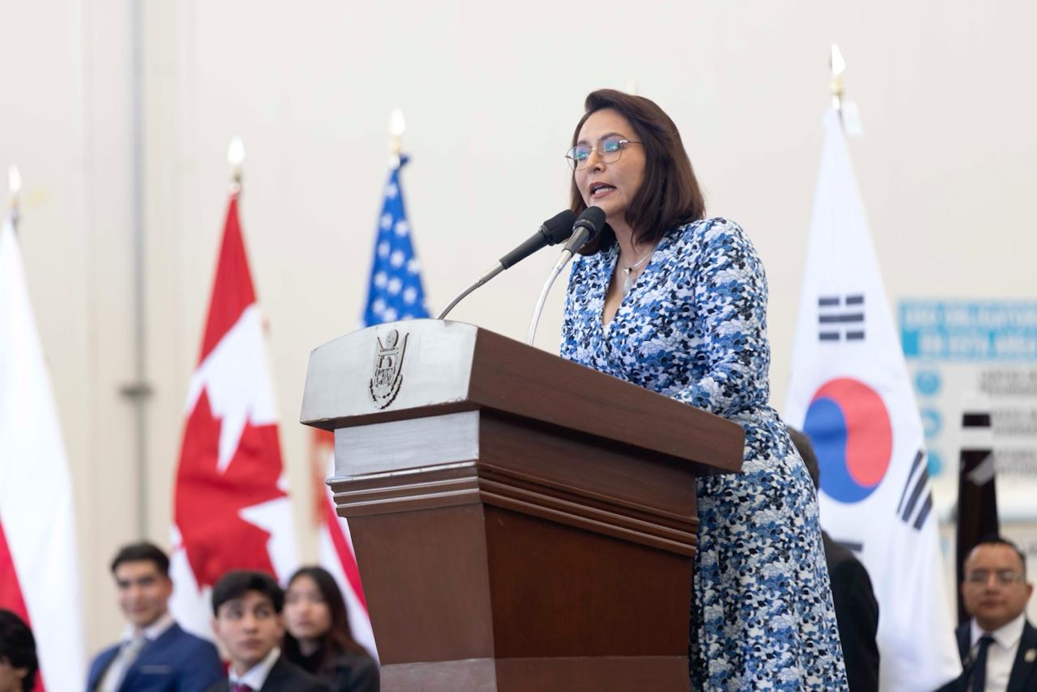 Al tomar la palabra, la titular de la Secretaría de Educación, Martha Elena Soto Obregón, compartió que la Beca Embajadores comenzó sustituyendo el apoyo Mexprotec; pero ahora se ha convertido en una insignia, pues en tres ediciones ha beneficiado a 644 estudiantes y 66 docentes, y año con año aumentan los interesados en obtenerla, así como los países donde pueden ejercerla.