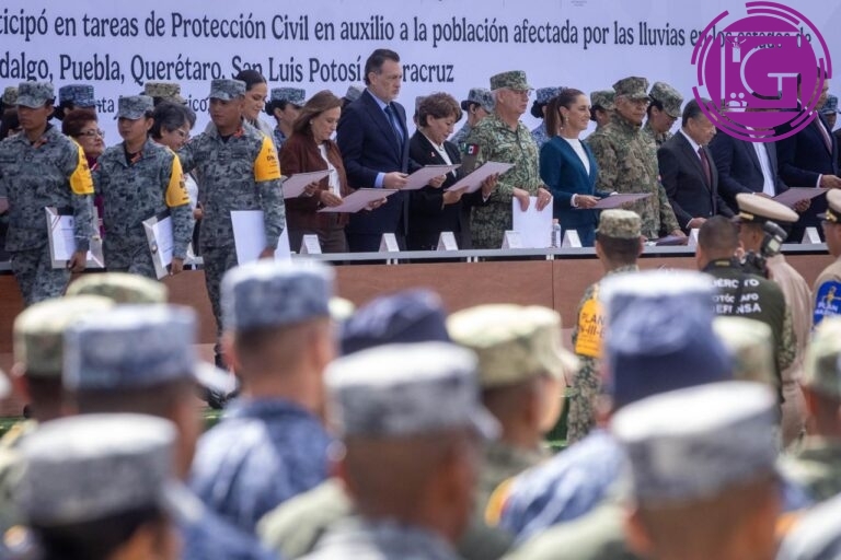 El gobernador del estado, Mauricio Kuri González, acompañó a la presidenta de México, Claudia Sheinbaum Pardo, en la Base Aérea Santa Lucía, a la ceremonia de Reconocimiento al Personal que Participó en Tareas de Protección Civil a través de los planes DN-III-E y Marina, así como de la Comisión Federal de Electricidad (CFE), derivado de la contingencia por las lluvias en los estados de Querétaro, Veracruz, Puebla, San Luis Potosí e Hidalgo.