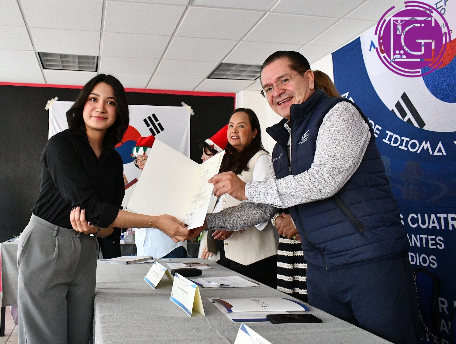 El rector de la Universidad Tecnológica de Querétaro (Uteq), Luis Fernando Pantoja Amaro, encabezó la ceremonia de clausura del curso de idioma y cultura coreana del Instituto Rey Sejong (IRS) Querétaro, en el periodo septiembre-diciembre 2025, entregando certificados a más de 150 alumnos que concluyeron sus estudios en el aprendizaje del idioma en los niveles: 1a y b, 2a y b, así como 3a y b.