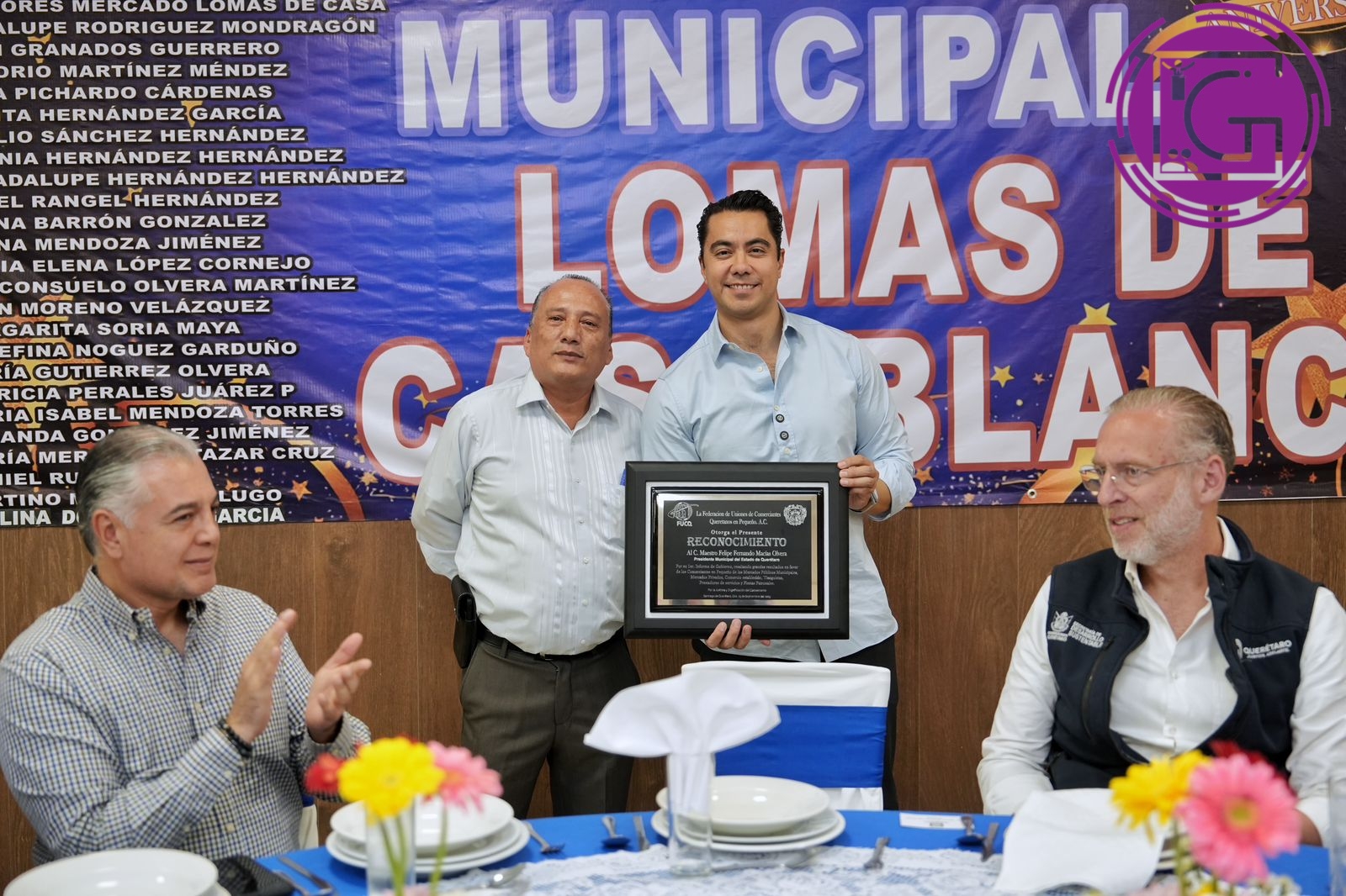 El presidente municipal de Querétaro, Felifer Macías, asistió como invitado de honor al 46º aniversario del mercado de Lomas de Casa Blanca, donde reafirmó su compromiso con los comerciantes para ofrecerles espacios dignos y funcionales que fortalezcan su actividad.