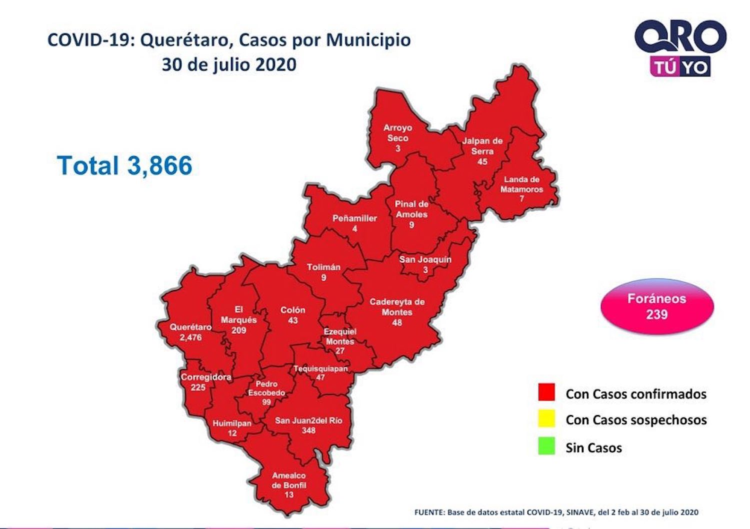<blockquote class=”twitter-tweet”><p lang=”es” dir=”ltr”>Querétaro con 3,866 casos de <a href=”https://twitter.com/hashtag/COVID19?src=hash&ref_src=twsrc%5Etfw”>#COVID19</a><br>2,771 altas. Con sintomatología leve 375 pacientes y 30 en la UMA COVID-19. Hay 190 pacientes hospitalizados de los cuales 73 se encuentran graves. Se han registrado 500 defunciones. <a href=”https://twitter.com/hashtag/RegresarDependeDeTodos?src=hash&ref_src=twsrc%5Etfw”>#RegresarDependeDeTodos</a> <a href=”https://twitter.com/hashtag/EstaEnNuestrasManos?src=hash&ref_src=twsrc%5Etfw”>#EstaEnNuestrasManos</a> <a href=”https://t.co/tyfyfA8o0y”>pic.twitter.com/tyfyfA8o0y</a></p>— SSalud Queretaro (@SSalud_Qro) <a href=”https://twitter.com/SSalud_Qro/status/1289012804259807233?ref_src=twsrc%5Etfw”>July 31, 2020</a></blockquote> <script async src=”https://platform.twitter.com/widgets.js” charset=”utf-8″></script>