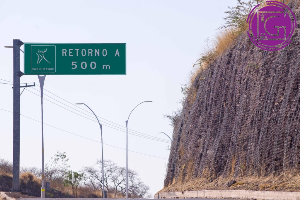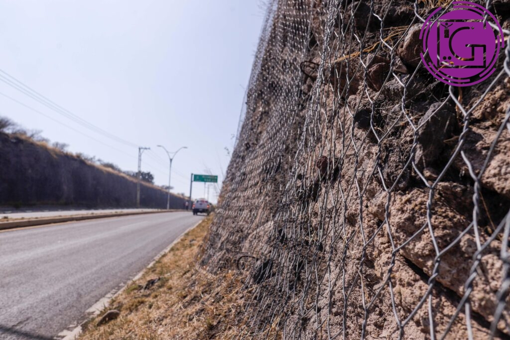 La segunda obra emergente fue la rehabilitación de taludes y malla antiderrumbes de la vialidad Paseo de los Venados, incluyendo limpieza, retiro de material erosionado, remoción de rocas y renovación de la malla, con el fin de prevenir riesgos y conservar la seguridad vial.