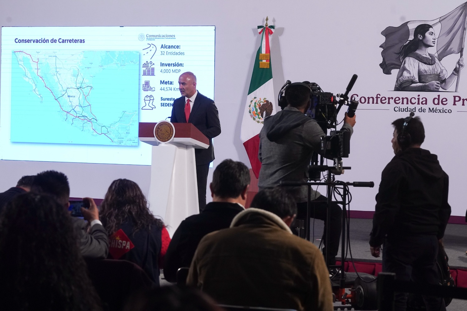 El secretario de Infraestructura, Comunicaciones y Transportes, Jesús Antonio Esteva Medina, señaló que el programa de conservación rutinaria de carreteras federales se implementará en las 32 entidades de la República –con apoyo de la Secretaría de la Defensa Nacional (Sedena) en el sureste–, con una meta de 44 mil 574 kilómetros restaurados de noviembre de 2024 a febrero de 2025, generando un aproximado de ocho mil 500 empleos.