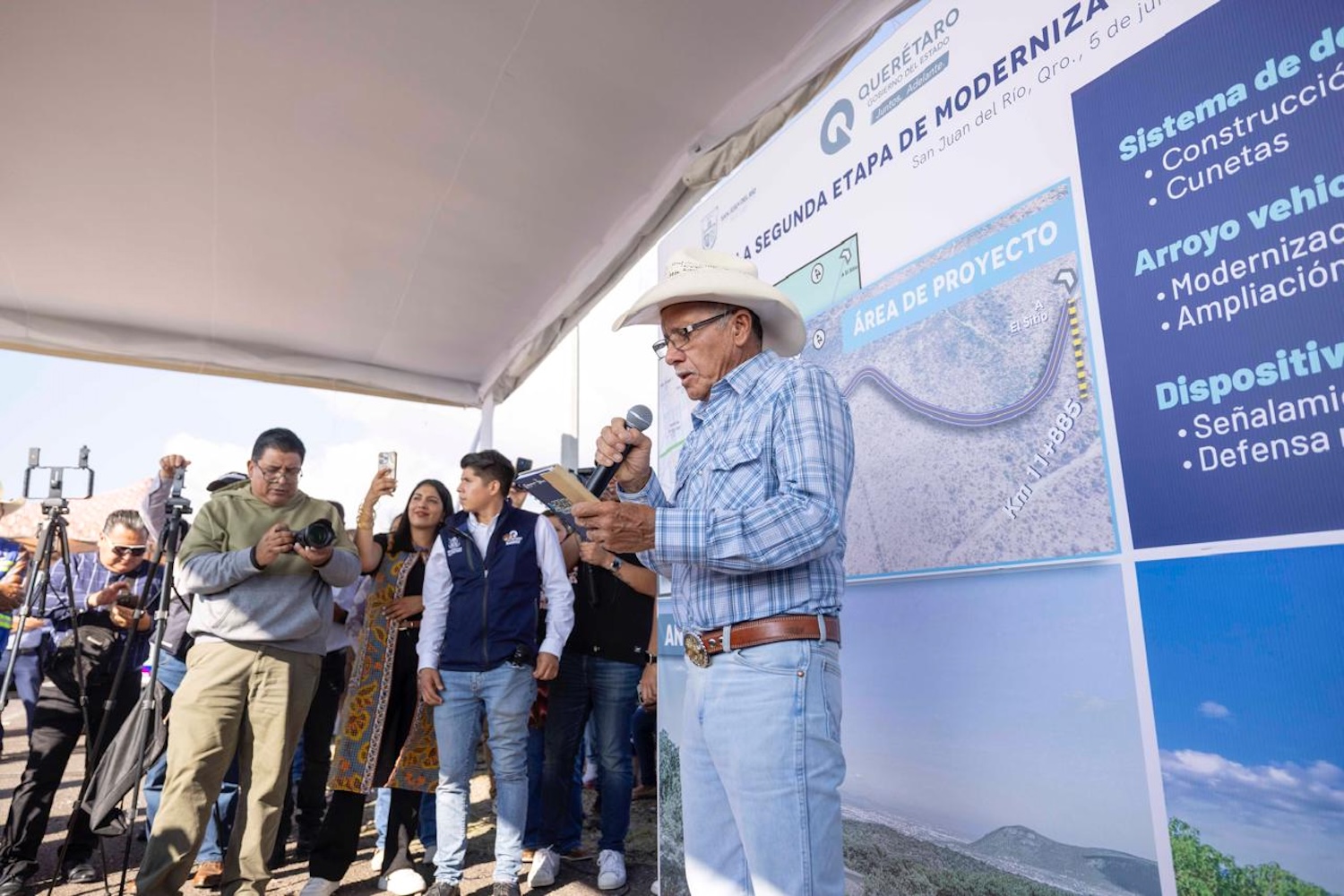 “Le comentaba ahorita al secretario, que cuántas etapas más faltan, o sea, sería esta y en otras dos más, nos la aventamos. Entonces ya me comprometí para que antes que me vaya en el 2027 ya esté completita de aquí para allá. Y muy agradecido aquí, don Simeón, muchas gracias por todo, con la comunidad El Sitio, con toda la gente aquí de la zona, de la zona de San Juan del Río”, apuntó.