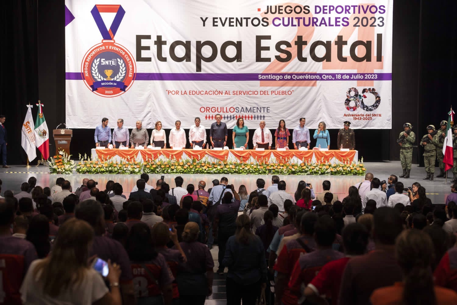 El gobernador del estado, Mauricio Kuri González, encabezó la inauguración de los Juegos Magisteriales Deportivos y Culturales 2023, los cuales llegan a su edición 32, fortaleciendo la convivencia y unión entre los docentes de Querétaro, mediante eventos que promueven el talento artístico y físico, a través de manifestaciones y disciplinas de alta competitividad.