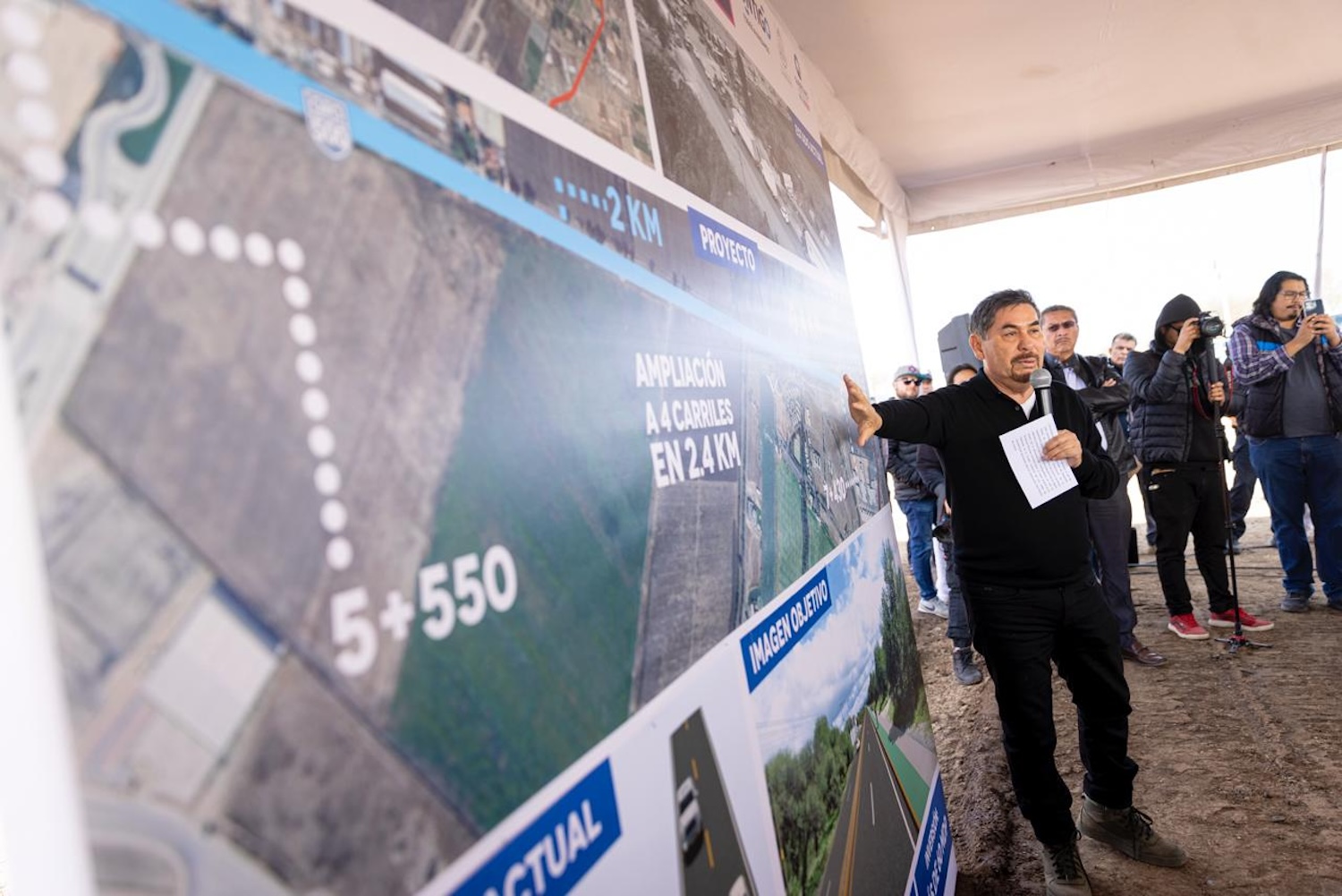 El secretario de Desarrollo Urbano y Obras Públicas, Fernando González Salinas, compartió los detalles de la obra que concluirá a finales del mes de mayo y forma parte del proyecto carretero que se consolida para brindar mejores vialidades; abundó que en esta vía el 90 por ciento del territorio es de vocación industrial, se atienden seis parques industriales y tres áreas habitacionales.