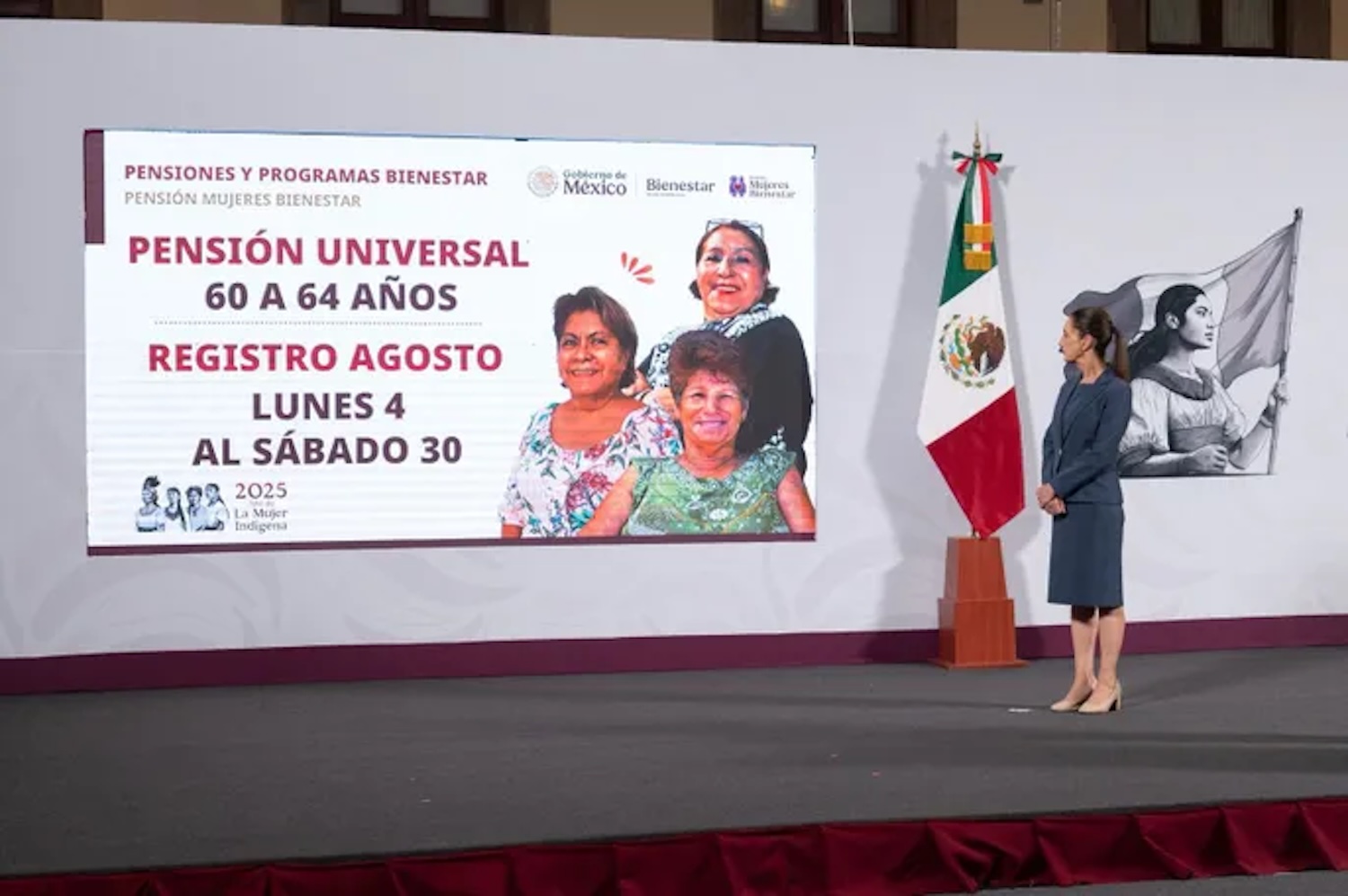 Destacó que, a estas políticas se suma la Pensión Mujeres Bienestar, que ya beneficia un millón 107 mil 69 mujeres y cuyo registro para todas las mexicanas entre 60 y 64 años abre del 4 al 30 de agosto, con lo que se estima que a finales de año se tengan 3 millones de beneficiarias. En tanto que a partir del 30 de abril iniciará la construcción de los primeros cinco Centros de Educación y Cuidado Infantil (CECI) del Instituto Mexicano del Seguro Social (IMSS) en Ciudad Juárez, Chihuahua, de un total de 200 que serán edificados en todo el país en beneficio de las mujeres trabajadoras.