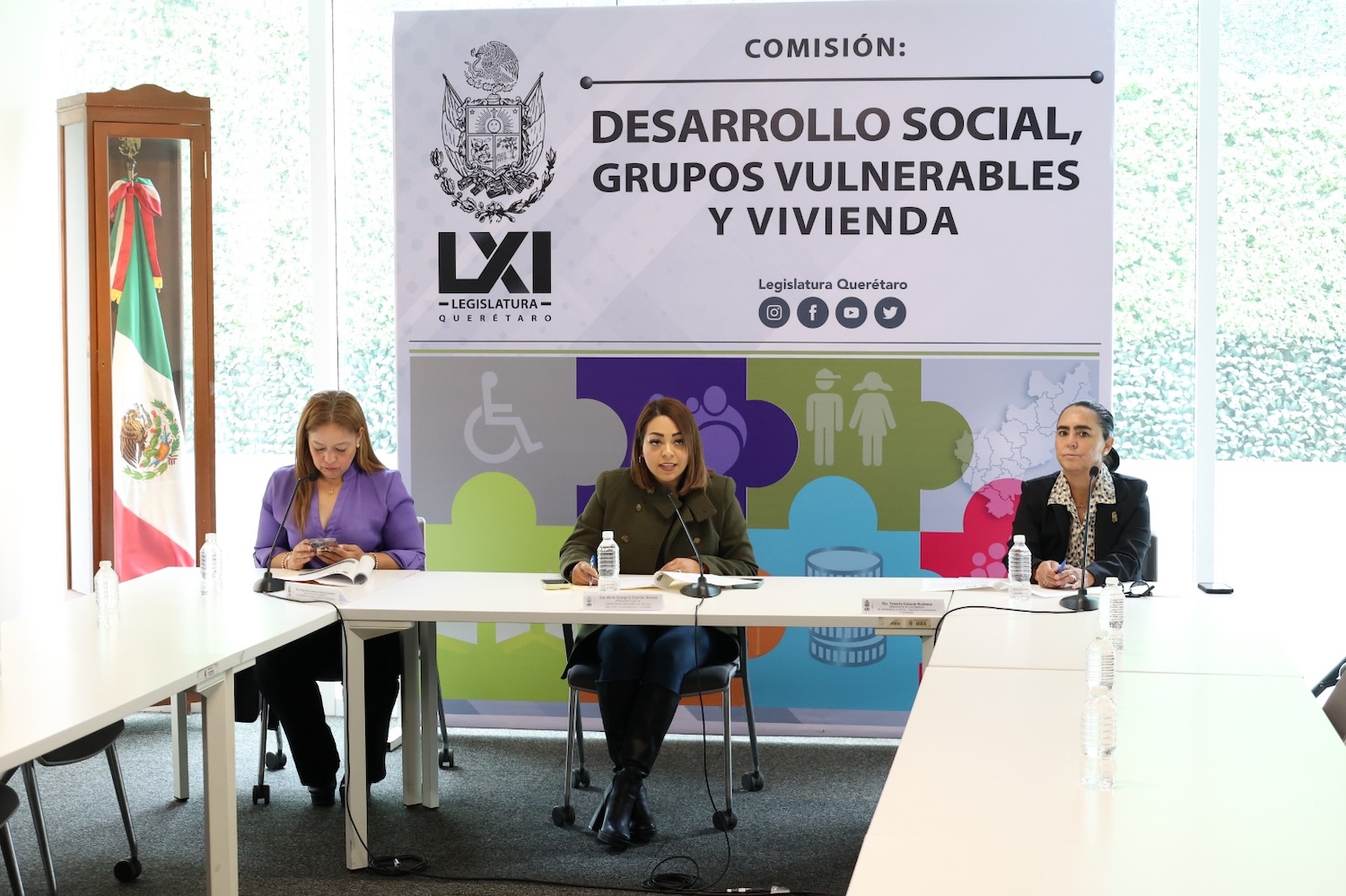 Al sesionar la Comisión de Desarrollo Social, Grupos Vulnerables y Vivienda, presidida por la diputada María Georgina Guzmán Álvarez e integrada por las legisladoras Verónica Galicia Castañón y Teresita Calzada Rovirosa, se aprobó el Dictamen conjunto de la “Iniciativa de Ley que reforma el artículo 4 de la Ley para la Inclusión al Desarrollo Social de las Personas con Discapacidad del Estado de Querétaro”, presentada por el Grupo PAN, y la “Iniciativa de Ley que reforma y adiciona diversas fracciones al artículo 4º de la Ley para la Inclusión al Desarrollo Social de las Personas con Discapacidad del Estado de Querétaro”, ingresada por la diputada Guzmán.