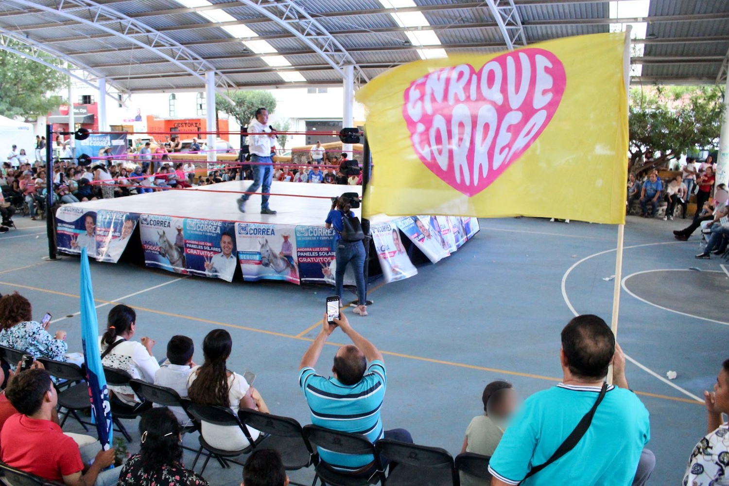 Enrique Correa, candidato del Partido Acción Nacional (PAN), por el VII Distrito local, compartió sus propuestas con los vecinos de Santa Rosa Jáuregui, en un gran espectáculo de lucha libre.