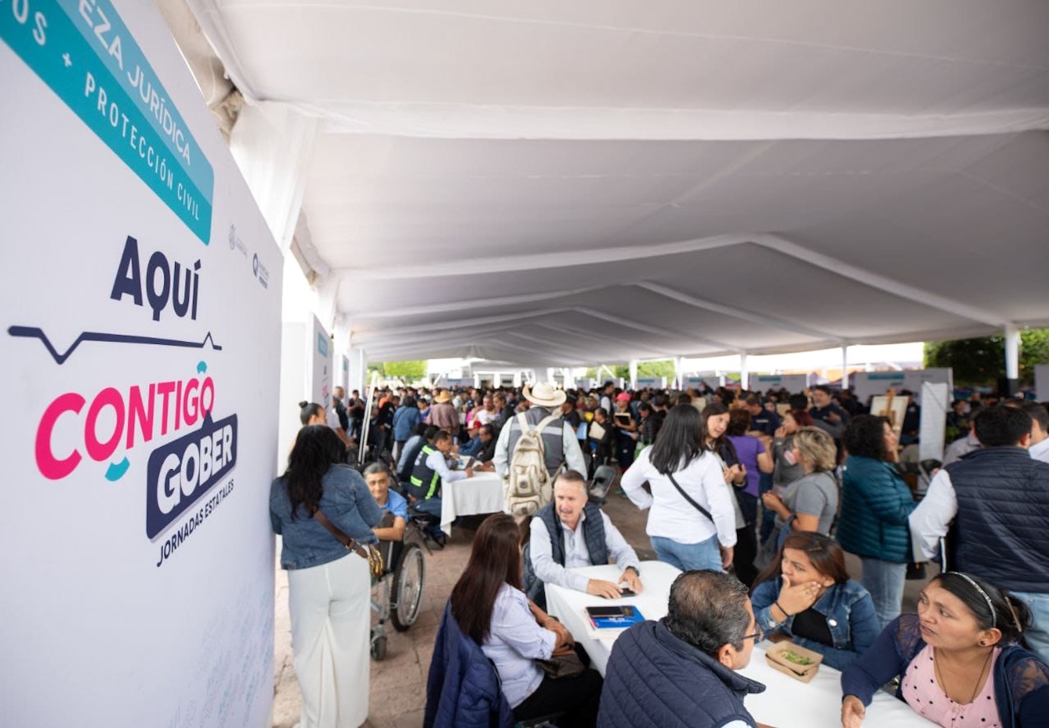 El gobernador del estado de Querétaro, Mauricio Kuri González, en compañía del presidente municipal de San Juan del Río, Roberto Cabrera Valencia, encabezó la “Jornada Aquí Contigo” en la Plaza Independencia, ubicada en el Centro Histórico de la demarcación, a la que asistieron cerca de 3 mil 800 personas.