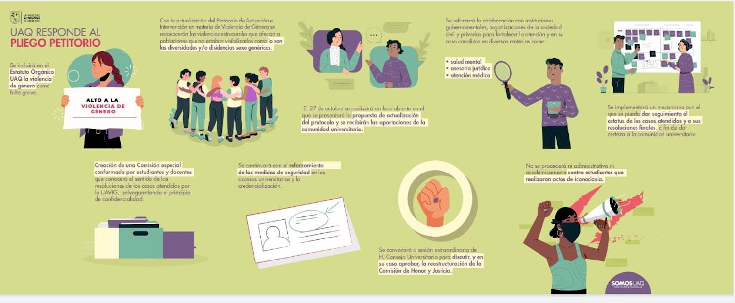 A pesar de que el pliego petitorio de los jóvenes paristas no ha sido entregado de forma oficial, áreas competentes de la Universidad Autónoma de Querétaro (UAQ) trabajaron, conformaron y presentaron respuesta a cada uno de los 28 planteamientos vertidos de forma pública.