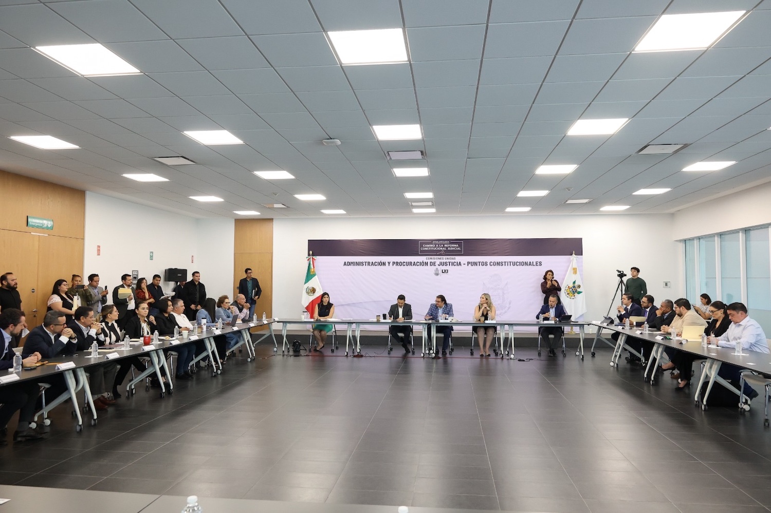 Las Comisiones Unidas de Administración y Procuración de Justicia y Puntos Constitucionales en la LXI Legislatura del Estado, presidida por el diputado Guillermo Vega Guerrero, e integrada por los legisladores Homero Barrero, secretario, Juliana Hernández Quintanar y Enrique Correa Sada, recibieron de los representantes acreditados por parte de los Ayuntamientos del Estado de Querétaro, sus observaciones respecto a la discusión de la reforma constitucional en materia judicial.