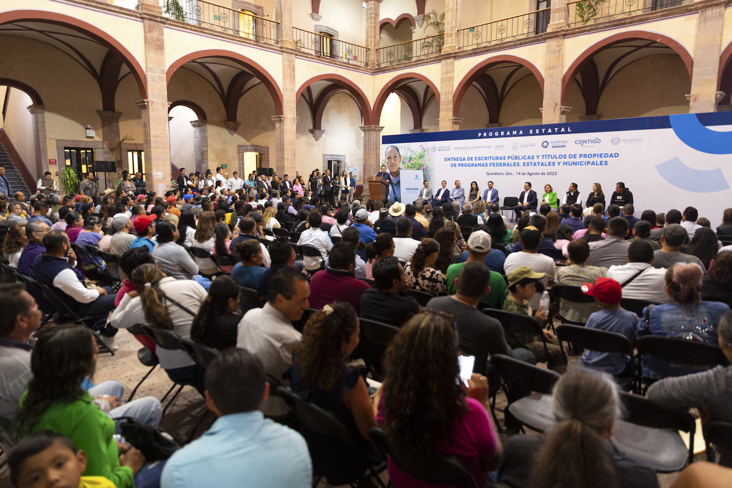 En Querétaro contamos con un gobierno cercano, que no solo se pone en los zapatos de la gente, sino también camina con ellos, así lo manifestó el gobernador del estado, Mauricio Kuri González, durante la entrega de 65 escrituras y títulos de propiedad a igual número de familias, ahí aseguró que contar con una vivienda propia brinda mayor seguridad e impulsa a trabajar para salir adelante.