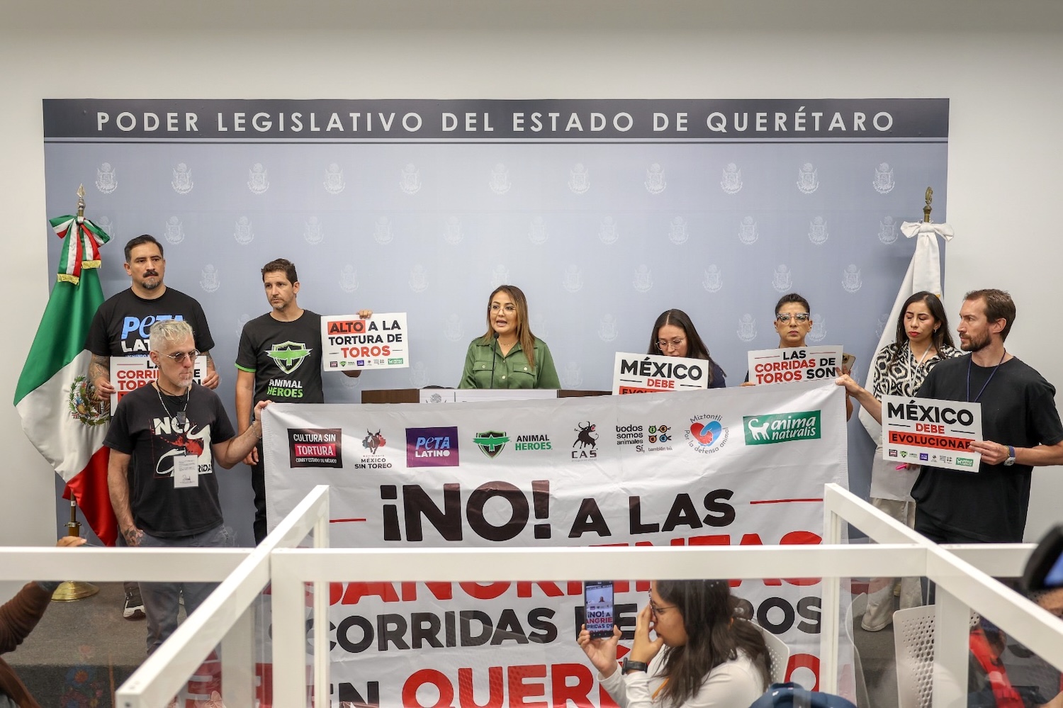 “El decreto que hoy estamos presentando, no es otra cosa que una armonización jurídica para la Constitución federal y los Tratados Internacionales en materia de Derechos Humanos y de Bienestar Animal. Por otro lado, es una respuesta al cambio generacional y de la conciencia social, que exige expresiones culturales éticas y respetuosas; es un compromiso como una legislación moderna, progresista y basada en evidencia de no intereses o nostalgias; reitero mi compromiso, mi comprensión y respeto a la pasión que llena a esta cultura y tradición de todas las opiniones y expresiones culturales. Sin embargo, el respeto a la Constitución Política de los Estados Unidos Mexicanos debe establecer que a la vida y a los derechos, debe ser que tutele la Soberanía de nuestro país y en nuestro Querétaro”, aseveró Claudia Díaz.