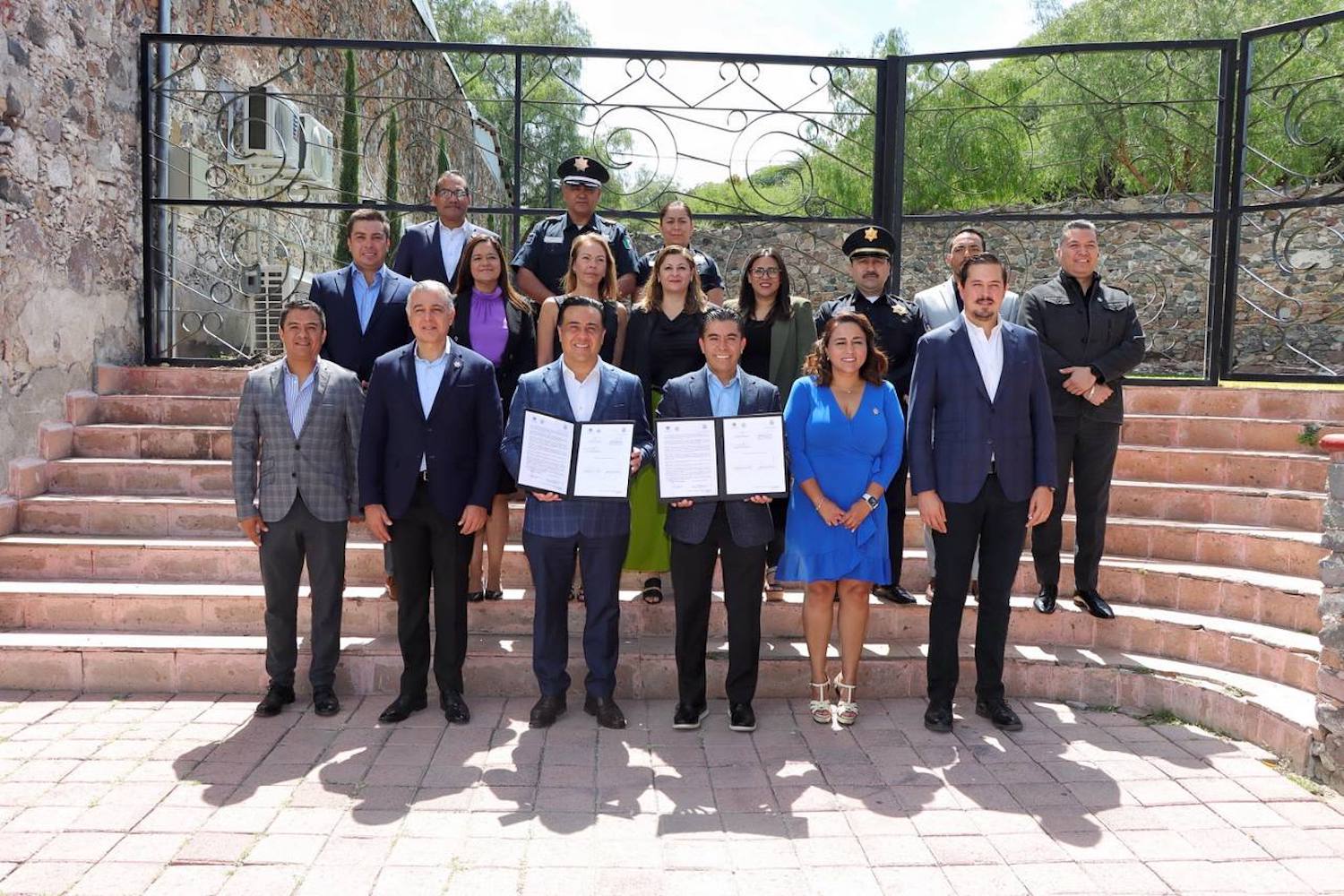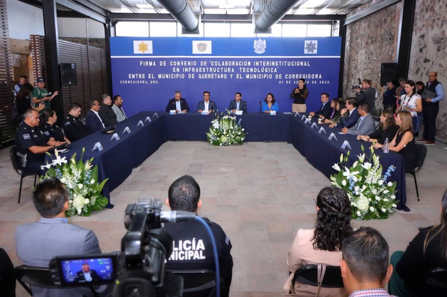 La firma de este convenio se llevó a cabo en las instalaciones del municipio de Corregidora, por parte de los titulares de las secretarías de Seguridad Pública de Querétaro y Corregidora, Juan Luis Ferrusca Ortiz y Caroline Lanestosa Oropeza, respectivamente, así como de los presidentes municipales, quienes fungieron como testigos, Roberto Sosa Pichardo, por Corregidora y Luis Bernardo Nava Guerrero, por Querétaro.
