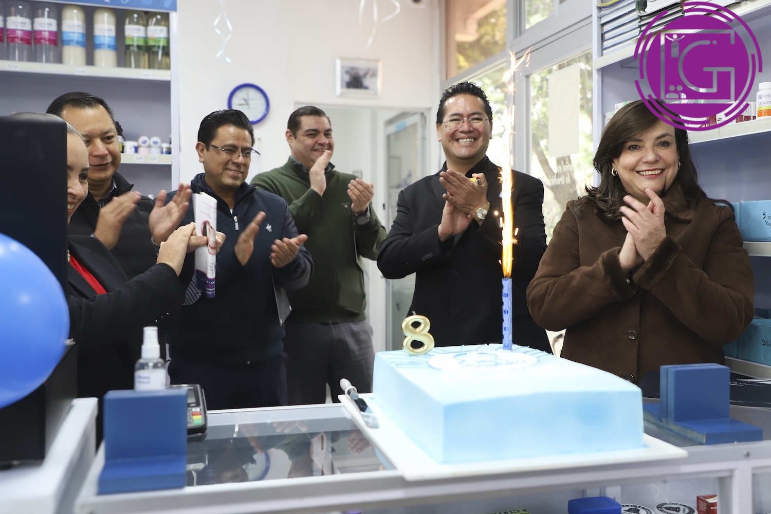 Autoridades de la Universidad Autónoma de Querétaro (UAQ) y de la Facultad de Química (FQ) celebraron el octavo aniversario de la Farmacia Universitaria “FarmaUAQ”, proyecto que se ha consolidado como un referente de los servicios que brinda esta alma mater. A lo largo de estos años, ha fortalecido su compromiso con la comunidad UAQ y la sociedad queretana ofreciendo medicamentos de patente y genéricos, además de artículos desarrollados por esta Institución.