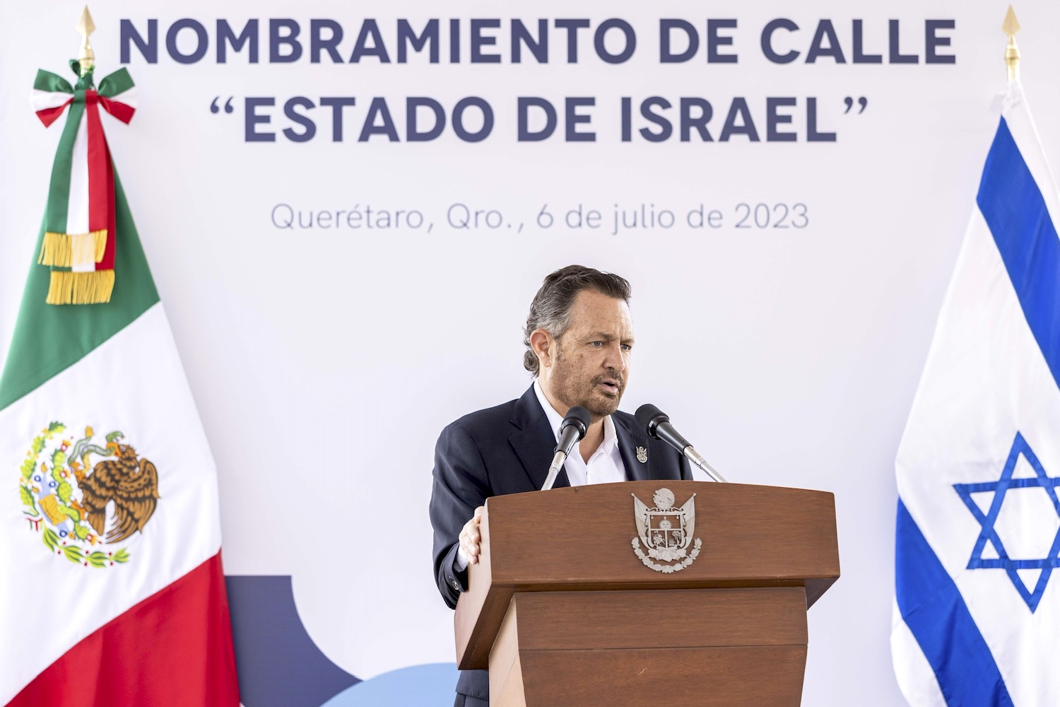 En el marco del 70 aniversario del establecimiento de las relaciones diplomáticas entre México e Israel, el gobernador del estado, Mauricio Kuri González, junto al embajador israelí en el país, Zvi Tal, atestiguó el nombramiento del Circuito Estado de Israel, ubicado en el fraccionamiento Sofía, de la capital queretana; acto que dijo, fortalece los lazos de amistad y cooperación entre ambas naciones.