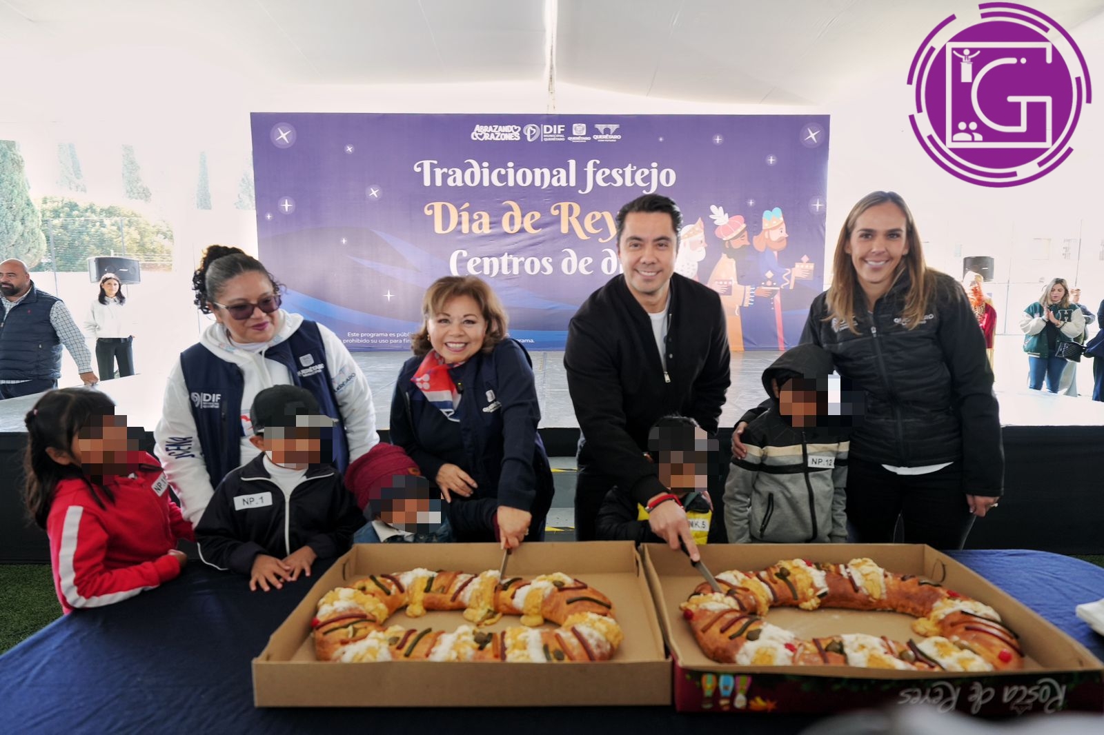 El presidente municipal de Querétaro, Felifer Macías, acompañó a la presidenta del Patronato del Sistema Municipal DIF, Adriana Olvera, y a la directora del DIF Municipal, Gabriela Valencia García, en la tradicional celebración del Día de Reyes, organizada para 150 niños de los Centros de Día Njhöya, Jädi y Meni.
