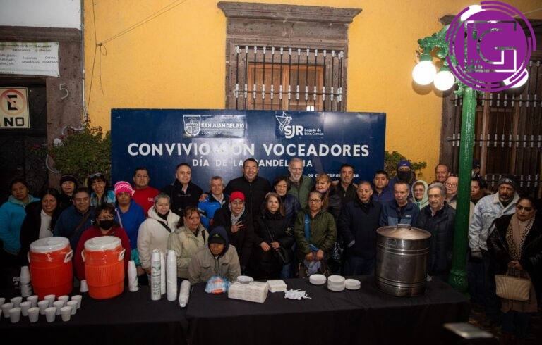 Como parte de las tradiciones que tienen arraigo en la sociedad sanjuanense, el presidente municipal, Roberto Cabrera Valencia —acompañado de los secretarios de Gobierno y Desarrollo Sustentable, ambos del estado de Querétaro, Éric Gudiño Torres y Marco Antonio del Prete Tercero, respectivamente, quienes acudieron en representación del gobernador, Mauricio Kuri González—, se reunió con los integrantes de la Unión de Voceadores Mauro Orozco Leal y de la Asociación de Voceadores Sanjuanenses, con quienes compartió tamales y atole con motivo del Día de la Candelaria.