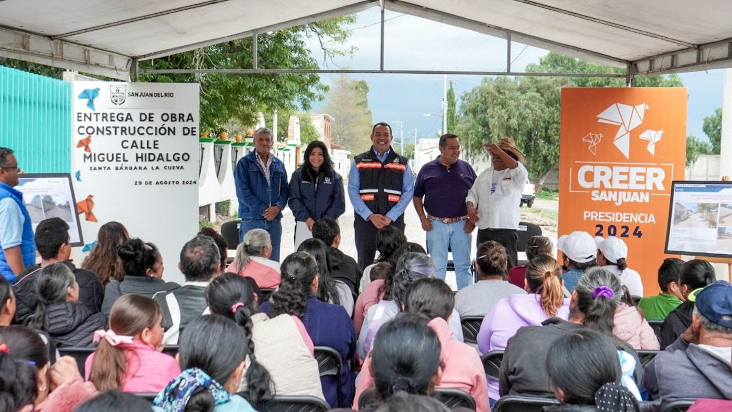 En beneficio de más de 700 habitantes y con una inversión cercana a 3 millones 400 mil pesos, el presidente municipal de San Juan del Río, Roberto Cabrera Valencia, entregó la construcción de la calle Miguel Hidalgo en la comunidad Santa Bárbara La Cueva, con lo cual se construye el futuro de San Juan.
