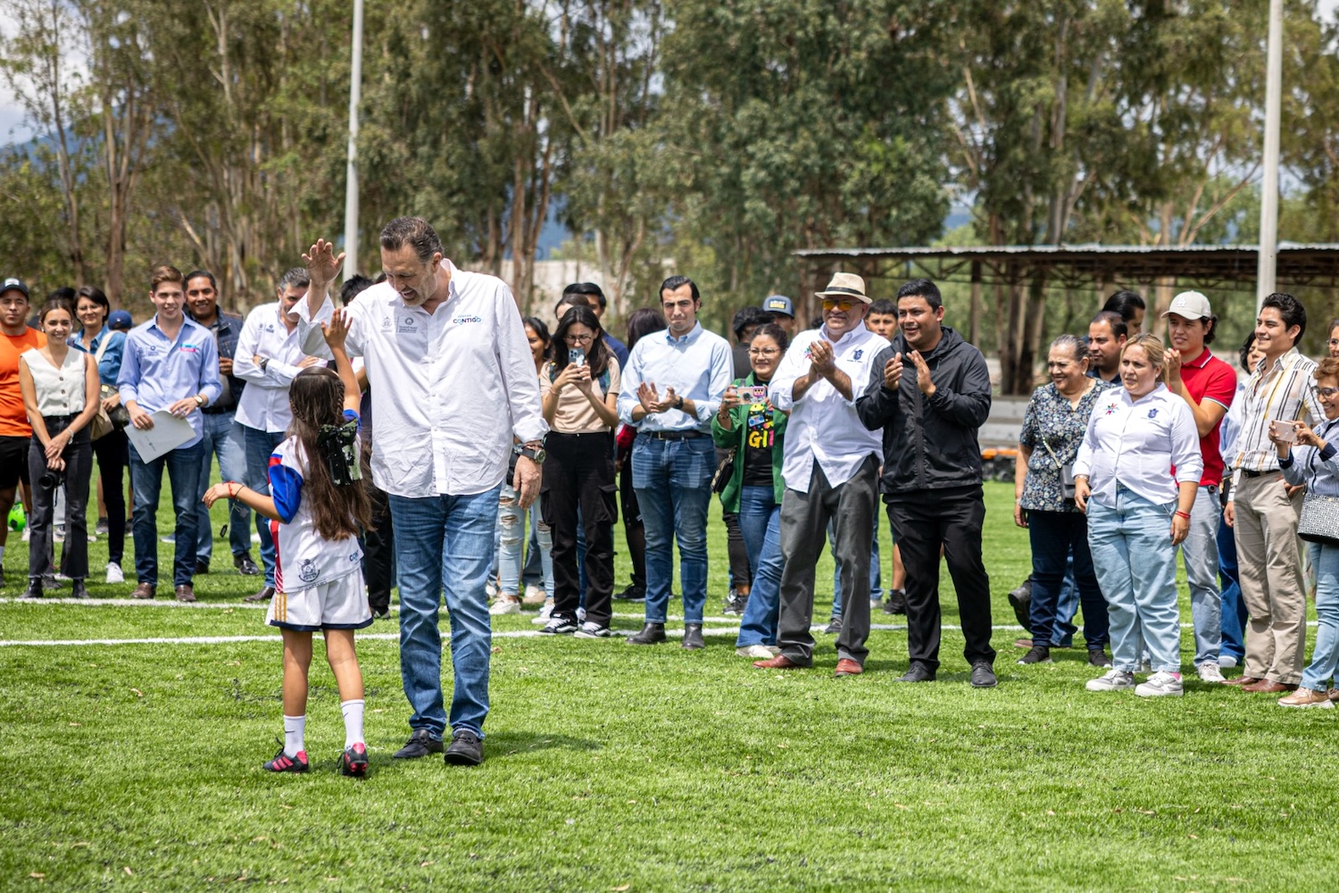 “En esta cancha de futbol se construyen sueños de niñas y niños que sueñan y ambicionan a llegar a ser deportistas de alto rendimiento, representar al estado, representar al país. Y todo lo que se deja aquí, en este lugar, se va impregnando de esta energía que contagia a más niñas y jóvenes a practicar disciplinas, a salir de los cuartos, de la ociosidad muchas veces, y se construyen los sueños”, celebró.