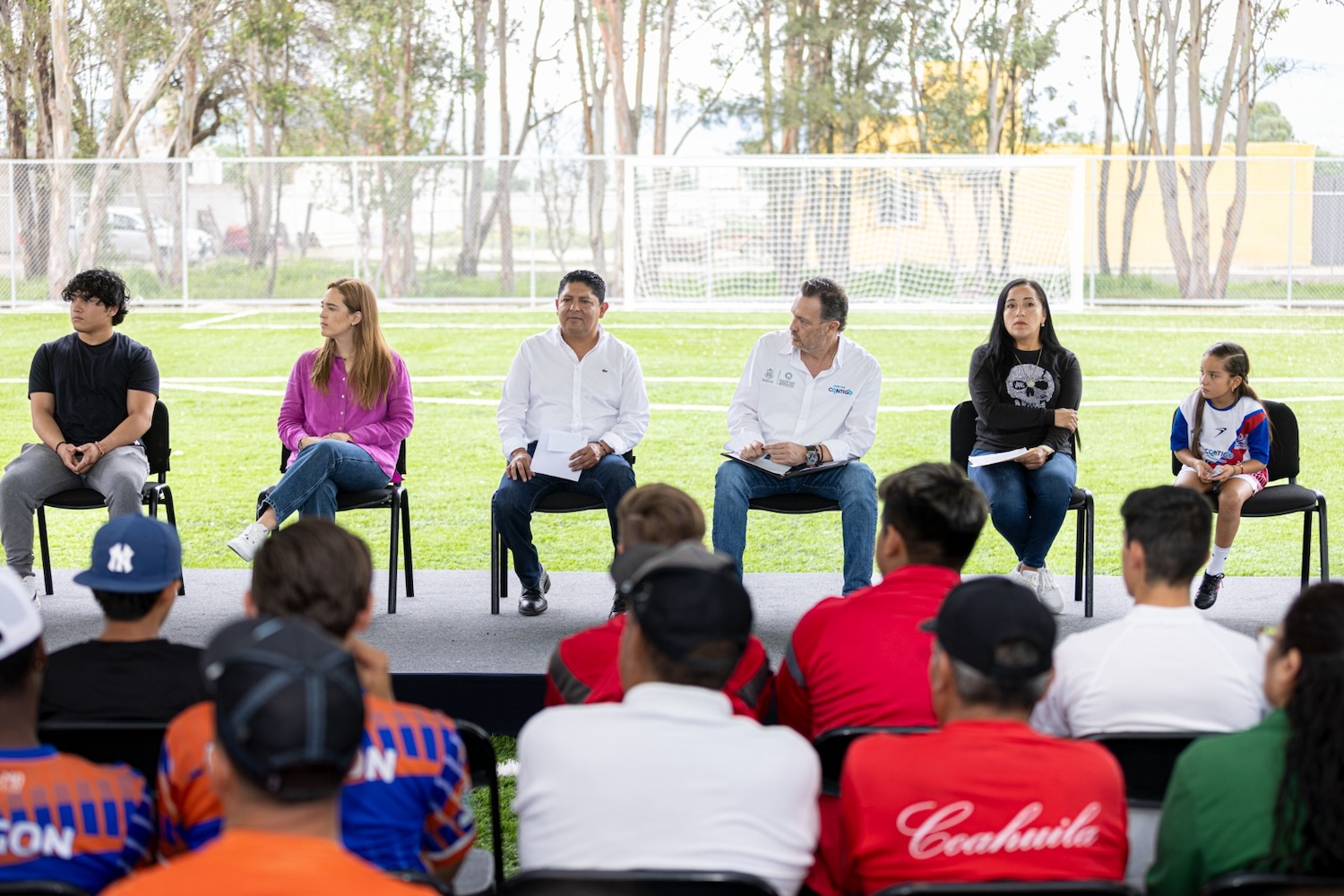 Dentro del acto inaugural, la directora del Instituto del Deporte y la Recreación del Estado de Querétaro (Indereq), Iridia Salazar Blanco, destacó que los trabajos consistieron en sustituir el campo de tierra por la colocación de pasto sintético, bancas para jugadores y cuerpo arbitral, además de dos porterías, lo cual sumado a las construcción de la base, realizada por el gobierno municipal, beneficia a dos mil jugadores que participan en 90 equipos de futbol, quienes compiten en cuatro ligas de distintos niveles.