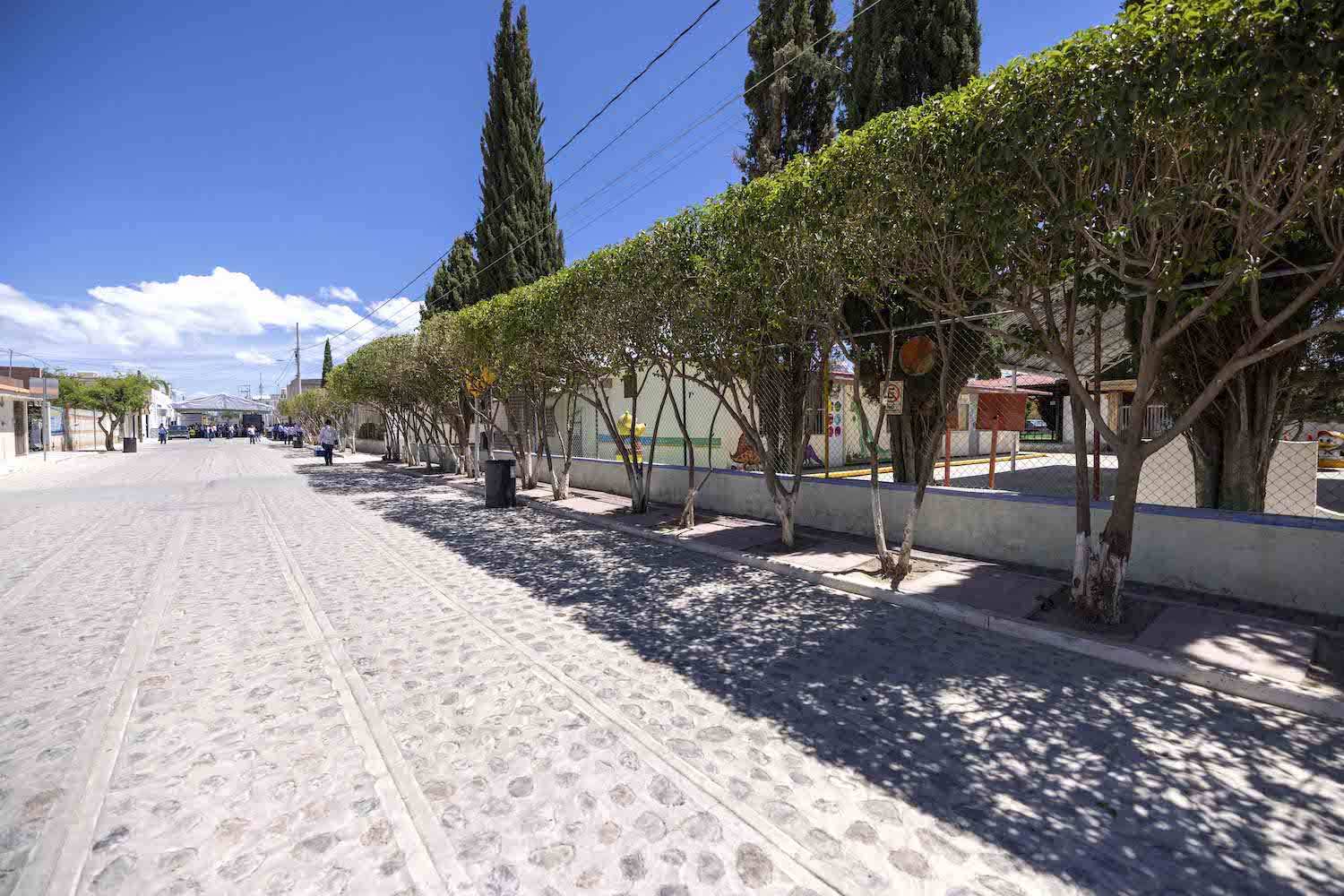 González Salinas explicó que, con los servicios renovados, procedieron a darle una nueva cara a las calles, modernizando casi dos kilómetros de vialidad con pavimento de empedrado empacado en mortero, construyeron banquetas y guarniciones de concreto; también instalaron cruceros de concreto hidráulico, habilitaron rampas para personas con discapacidad, colocaron bolardos para reforzar la accesibilidad y la seguridad de los peatones, así como la instalación de señalización horizontal y vertical.