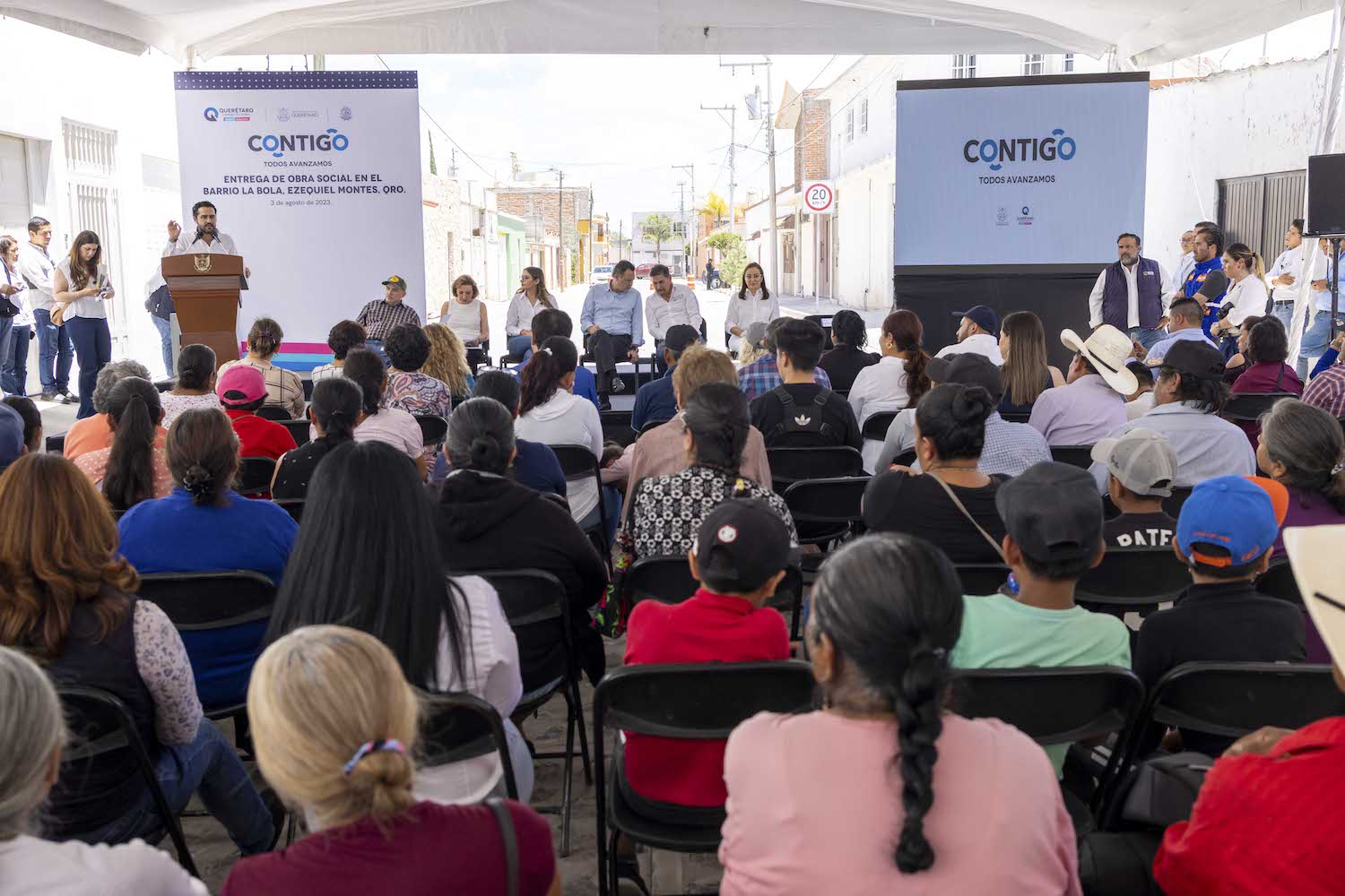 El gobernador del estado, Mauricio Kuri González, presidió la entrega del mejoramiento de calles del barrio La Bola, en el municipio de Ezequiel Montes, obra social que mediante una inversión de 26 millones 757 mil pesos, dijo, fortalece el tejido social de las comunidades y mejora la calidad de vida de más de 30 mil habitantes de la región.