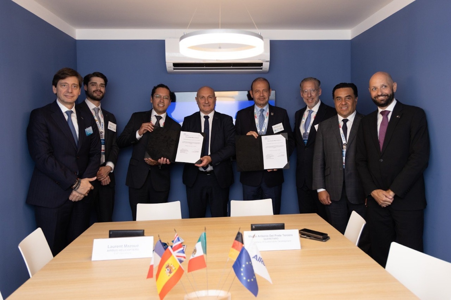 El titular de la Secretaría de Desarrollo Sustentable (Sedesu), Marco Antonio Del Prete Tercero, en representación del gobernador del estado, Mauricio Kuri González, sostuvo un encuentro con el vicepresidente ejecutivo de operaciones de Airbus Helicopters, Laurent Mazoué, quienes realizaron la firma del acuerdo de cooperación que confirma la ampliación de la empresa francesa en el estado.