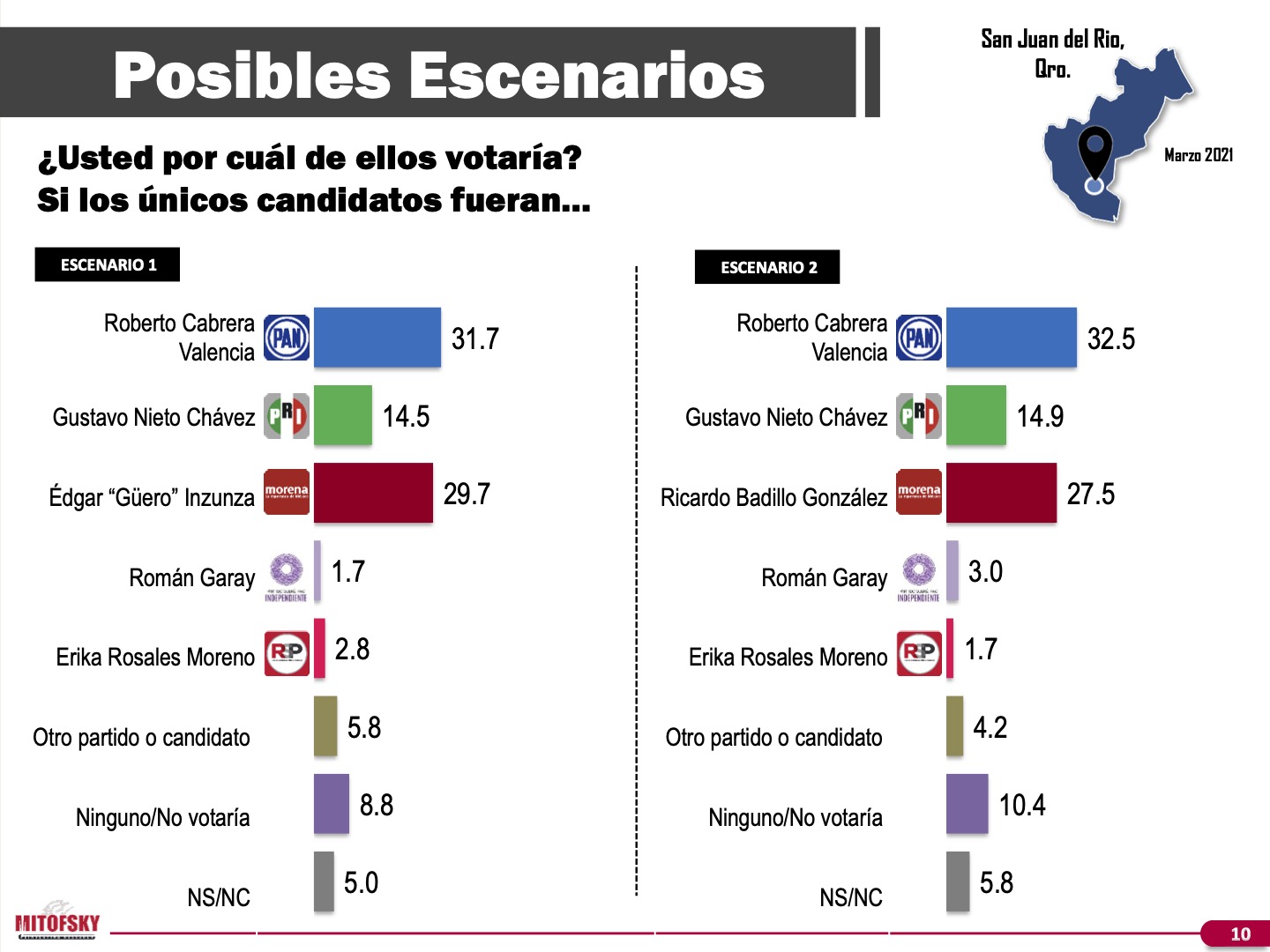 Se despejan dudas. La empresa Consulta Mitofsky ha publicado en su portal de Internet su encuesta “San Juan del Río, Qro. Tendencias Electorales [Marzo 2021]”, la cual señala que Édgar “Güero” Inzunza es el mejor posicionado del Movimiento de Regeneración Nacional (Morena) para encabezar la candidatura a la presidencia municipal de San Juan del Río.