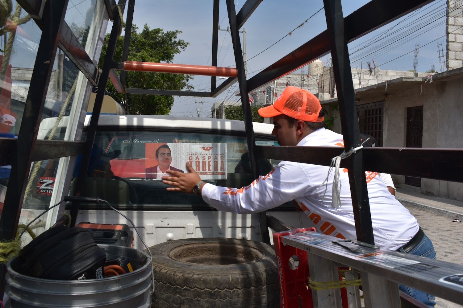 En el recorrido, tuvo la oportunidad de encontrarse con cientos de colonenes y algunos que con gusto facilitaron sus automóviles particulares para adherir microperforados de “¡Arráncate Colón con Gaspar Trueba!”.