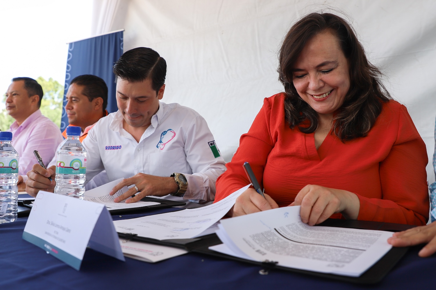 La rectora de Universidad Autónoma de Querétaro (UAQ), Silvia Amaya Llano, junto con el presidente municipal de El Marqués, Rodrigo Monsalvo Castelán, encabezaron el inicio formal de la edificación de un campo de futbol para el campus Amazcala, mismo que será posible gracias a un acuerdo firmado entre ambas instituciones, con una inversión de 20 millones de pesos.