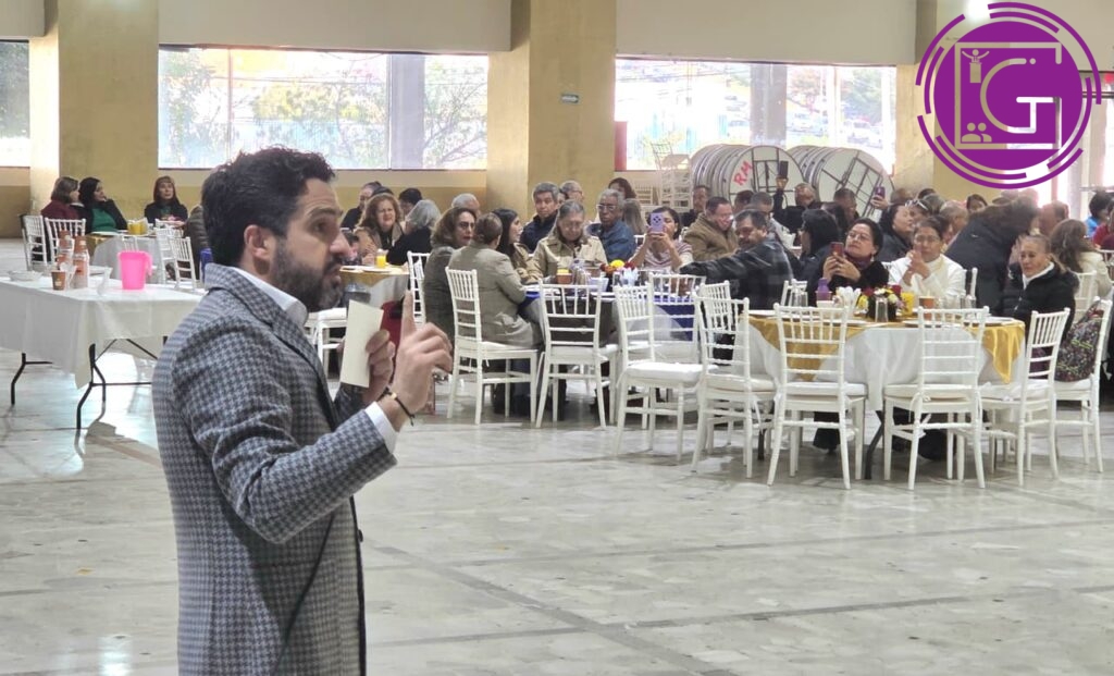 El senador Agustín Dorantes Lámbarri, en compañía de la Oficial Mayor del Poder Ejecutivo, Lynda Rangel Luna, y del secretario general del Sindicato de Trabajadores al Servicio de los Poderes del Estado, Luis Antonio López Haro, convivió con más de 600 jubilados, en su tradicional desayuno de fin de año.