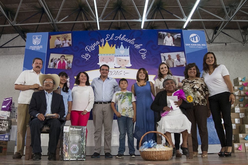 El Presidente Municipal de San Juan del Río, Guillermo Vega Guerrero y su esposa Male Ruiz Pérez coronaron a los “Abuelos de Oro” 2016, certamen en el que participaron 82 adultos mayores, contando con 10 parejas finalistas.