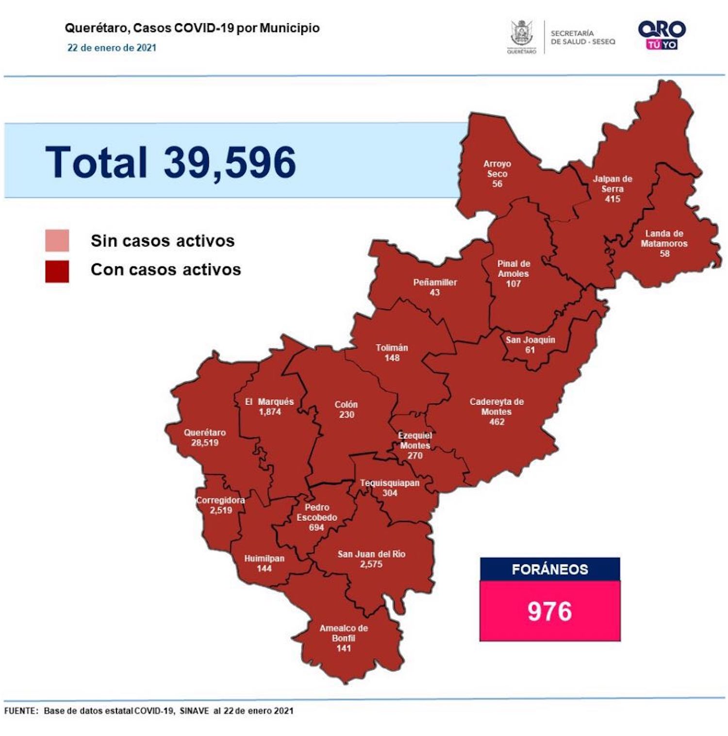 En la entidad se tiene un registro acumulado de 39 mil 596 casos de Covid-19; 50% son mujeres y 50% son hombres.