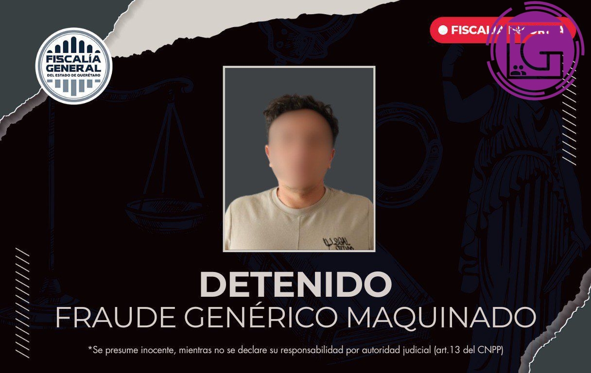La Fiscalía General del Estado de Querétaro, a través de agentes de la Policía de Investigación del Delito (PID), cumplió una orden de aprehensión en contra de un hombre, por su probable intervención en el delito de fraude genérico maquinado, derivado de un esquema financiero fraudulento que ocasionó afectaciones económicas a varias víctimas.