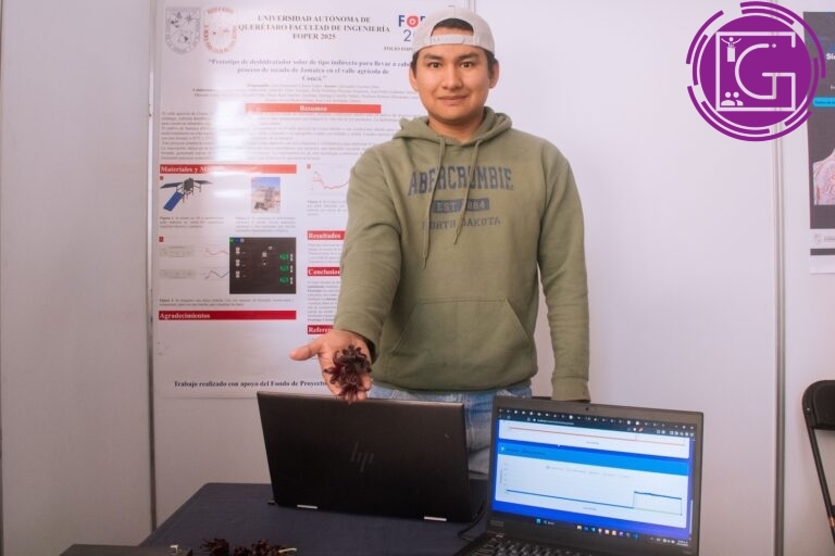 El alumno de Ingeniería Agroindustrial de la Universidad Autónoma de Querétaro, campus Concá, Emanuel Calistro López, trabaja en el diseño de un prototipo de deshidratador de fuente renovable. La iniciativa se orienta a atender necesidades productivas regionales mediante alternativas sustentables aplicadas al procesamiento de siembras locales; la investigación es impulsada por el Fondo de Proyectos Especiales de Rectoría (Foper).