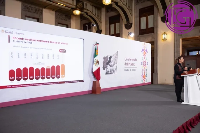 La presidenta Claudia Sheinbaum Pardo resaltó que México alcanzó una cifra histórica de Inversión Extranjera Directa (IED) en 2025 al recibir 40 mil 871 millones de dólares, lo que representa un crecimiento de 10.8 por ciento respecto a 2024, la cifra más alta registrada en un ejercicio anual, lo que refleja que México va bien, la confianza en el país y que el modelo económico de la Cuarta Transformación da resultados.