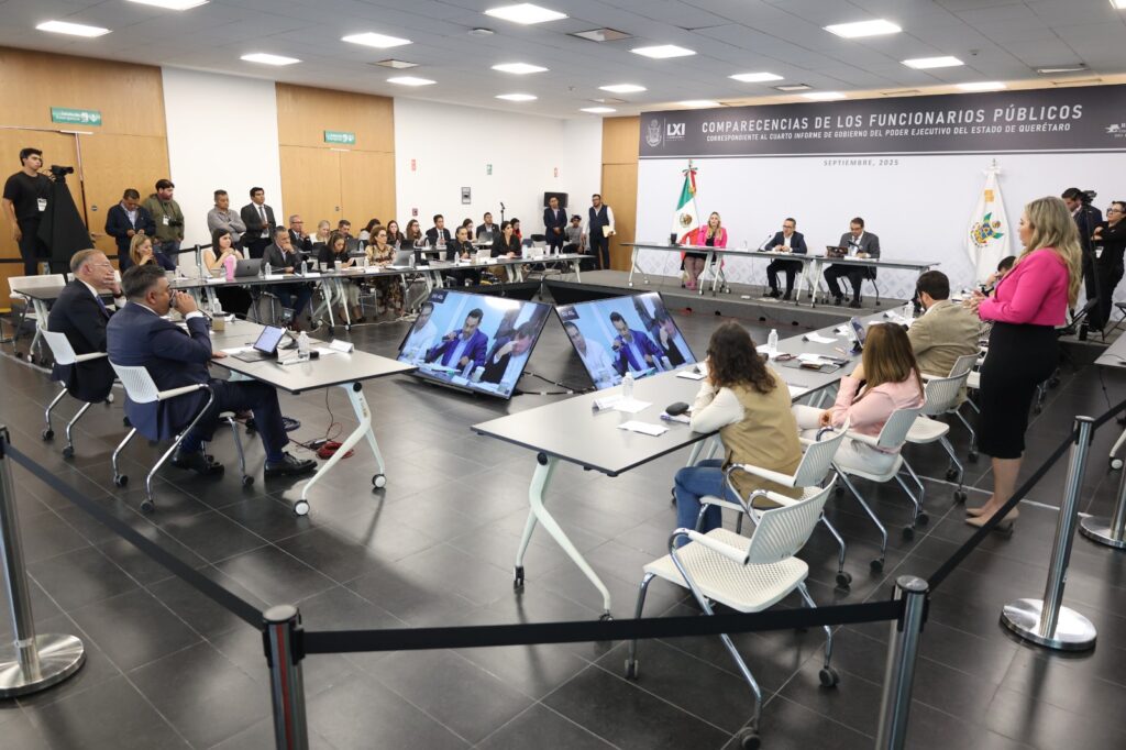 En el marco del análisis del Informe General que guarda la administración pública en la entidad, correspondiente al Cuarto Año de Ejercicio Constitucional del Poder Ejecutivo del estado de Querétaro, compareció el titular de la Secretaría de Desarrollo Sustentable, Marco Antonio del Prete Tercero, bajo la moderación del presidente de la Mesa Directiva de la LXI Legislatura del estado, Gerardo Ángeles; y del presidente de la Junta de Coordinación Política, Memo Vega.
