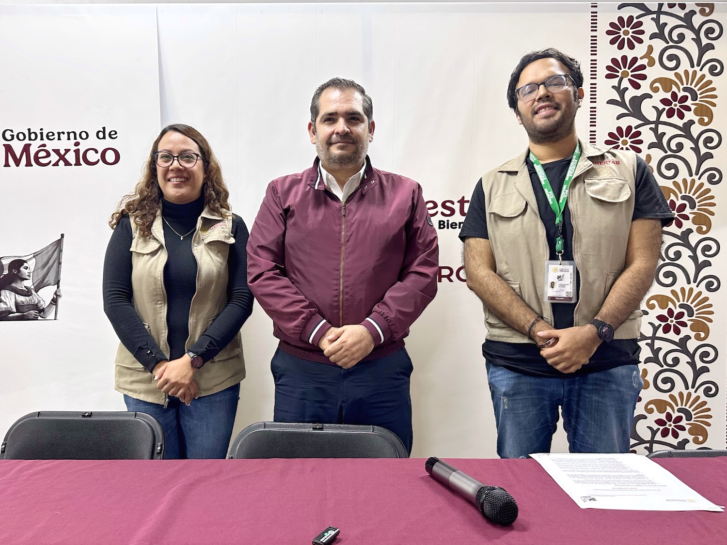 El delegado de Bienestar estuvo acompañado en esta rueda de prensa por la titular de la Oficina de Representación Estatal de Becas para el Bienestar Benito Juárez, María Guadalupe Solano Olvera, quien informó sobre el calendario de pago de las Becas para el Bienestar el cual inicia este lunes 2 y hasta el martes 24 de diciembre para los más de 163 mil beneficiarios de los niveles básico, media superior y superior.