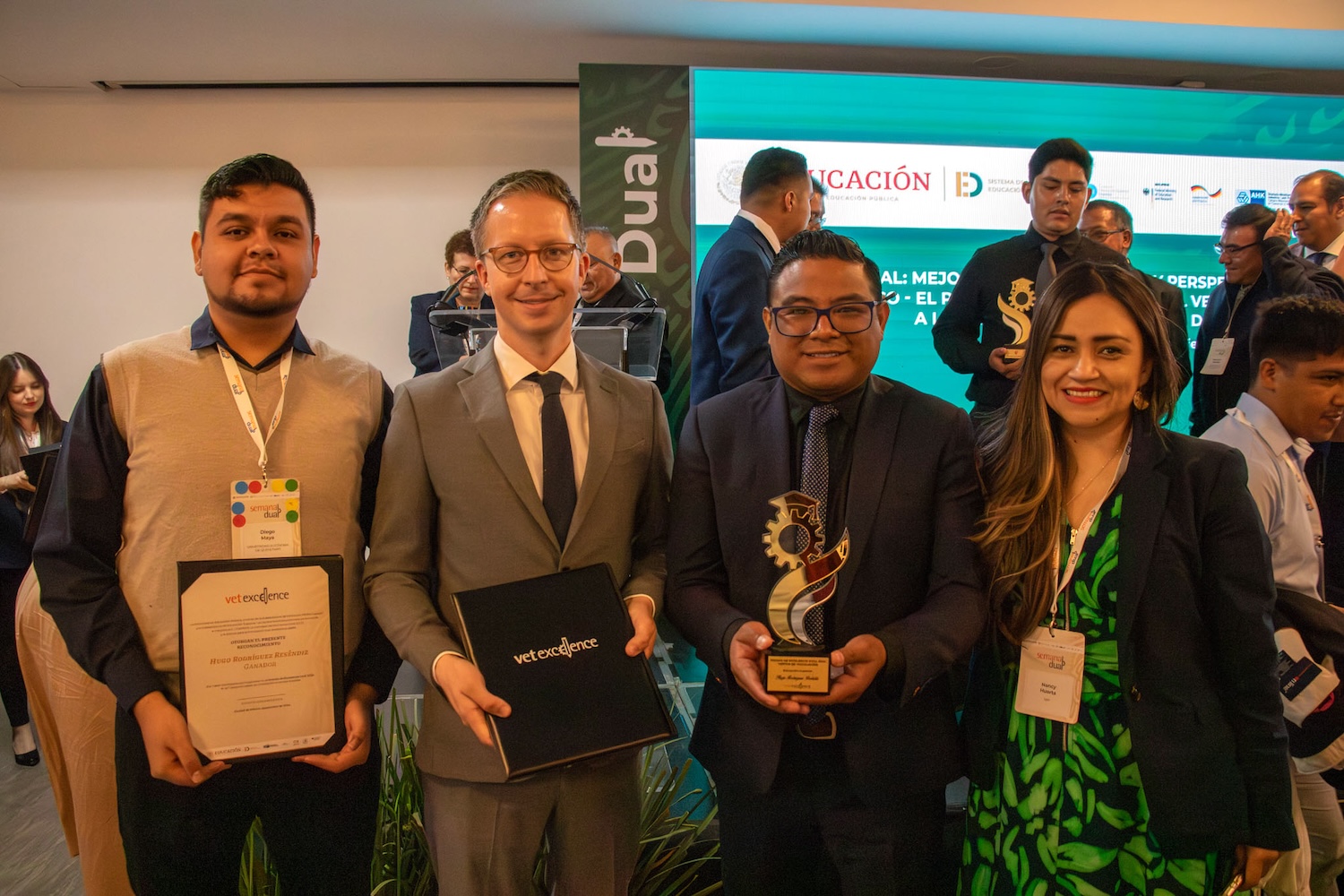 La Universidad Autónoma de Querétaro (UAQ) y el coordinador de Educación Colaborativa (Educo), Hugo Rodríguez Reséndiz, fueron reconocidos en el “Premio de Excelencia Dual 2024”, un certamen de gran prestigio organizado por la Secretaría de Educación Pública, el Ministerio Federal de Educación e Investigación de Alemania, la Cámara Mexicano-Alemana de Comercio e Industria, el Consejo Coordinador Empresarial y la Alianza para la Educación Dual Empresarial.