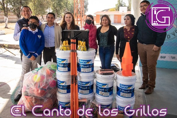En su mensaje, la presidenta del DIF San Juan del Río detalló que entre los materiales donados se encuentran nueve cubetas de pintura de distintos colores, cubetas de sellador, brochas, extensiones, rodillos, cepillos, balones de futbol y basquetbol, conos, redes, canastas, dos porterías, una tonelada de cemento, además de un millar y medio de tabique.