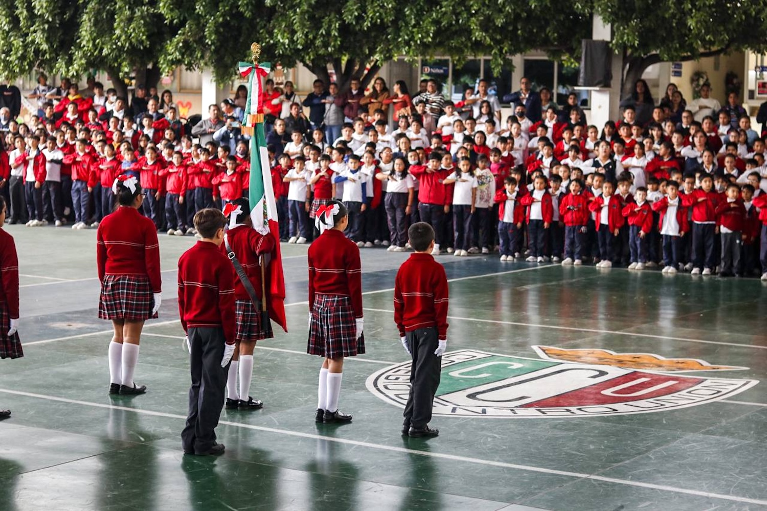 El presidente municipal de San Juan del Río, Roberto Cabrera Valencia, encabezó la ceremonia de honores a la Bandera en las instalaciones del Colegio Centro Unión, donde resaltó que la educación es uno de los pilares de la demarcación, ya que, a través de ella, además de brindar conocimientos a la niñez y las juventudes, también se les ofrecen valores que contribuyen a la construcción de ciudadanía.