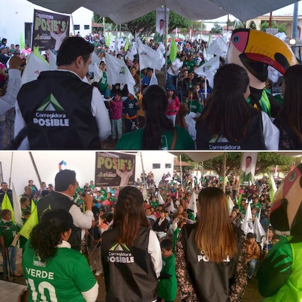 Ricardo Astudillo, candidato a la presidencia municipal de Corregidora por el Partido Verde y PRI, comenzó sus cierres de campaña en Charco Blanco, al reunirse con los habitantes ante un cálido recibimiento, donde reafirmó sus propuestas de campaña para hacer un Corregidora Posible y aseguró que detonará los proyectos turísticos en esta región con el rescate de la Ruta del Mamut y el Parque La Parcela, además de integrar a todos los habitantes y que tengan las mismas oportunidades de servicios.