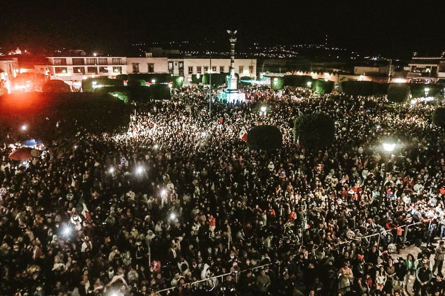 El presidente municipal, Roberto Cabrera Valencia, encabezó la ceremonia con motivo del Grito de Independencia desde el balcón del Templo de Nuestra Señora de Guadalupe, donde estuvo acompañado por la presidenta del Sistema Municipal para el Desarrollo Integral de la Familia (DIF), Georgina Sánchez Barrios.