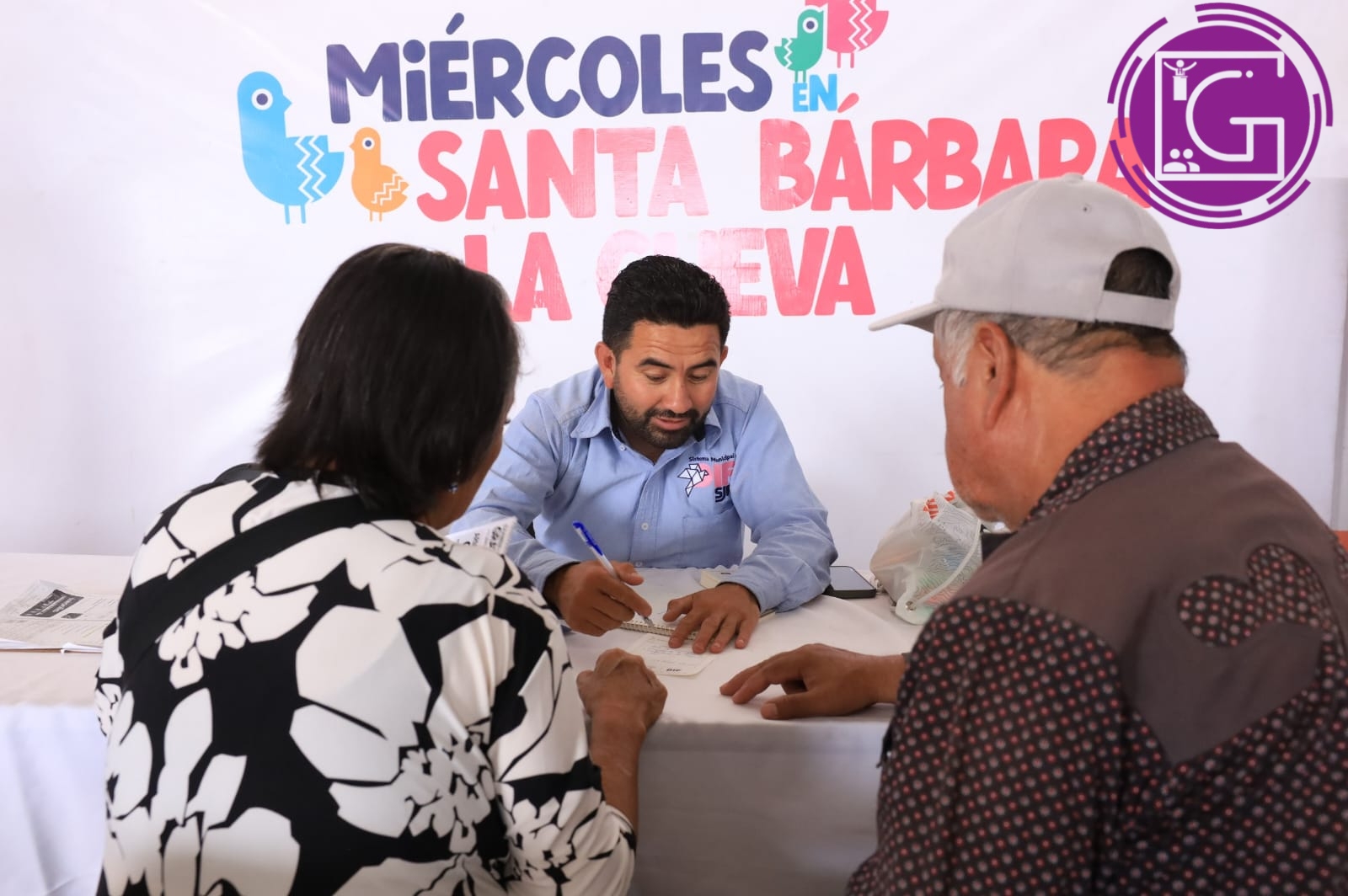 Como parte de las actividades del Programa “Miércoles en Santa Bárbara La Cueva”, se realizó una jornada de atención ciudadana en mesas en la que participaron el Sistema Municipal para el Desarrollo Integral de la Familia (DIF), la Secretaría de Servicios Públicos Municipales, la Junta de Agua Potable y Alcantarillado Municipal (JAPAM), las Secretarías de Desarrollo Agropecuario, de la Mujer, Desarrollo Social, Finanzas, Obras Públicas y Desarrollo Urbano, Seguridad Pública y la Coordinación Técnica de Desarrollo Económico; asimismo, se llevó a cabo una campaña de salud visual. En estas mesas, se brindaron más de 180 atenciones.