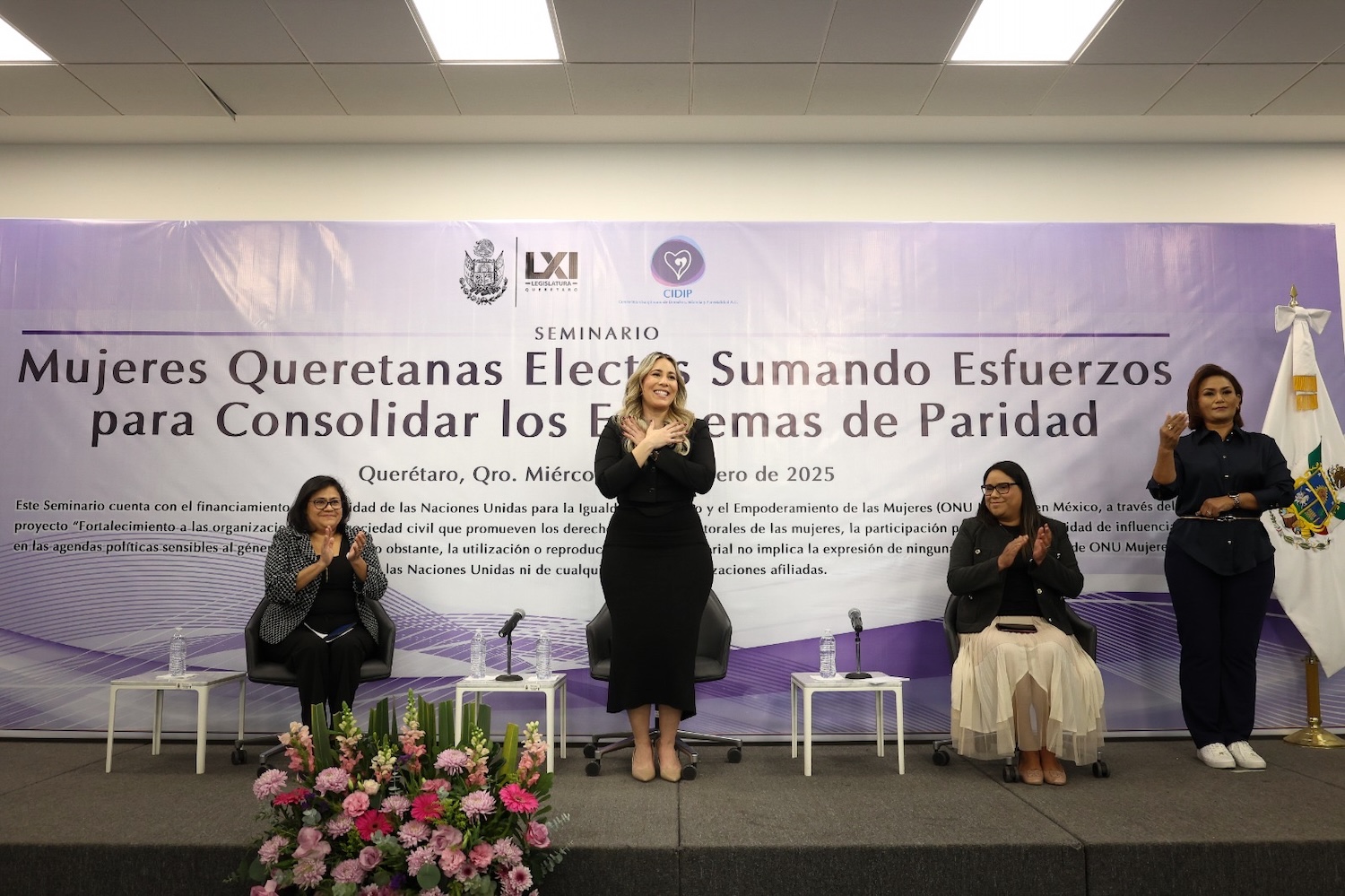 En el salón Ezequiel Montes del Poder Legislativo, la presidenta de la Mesa Directiva en la LXI Legislatura, diputada Laura Andrea Tovar Saavedra, encabezó el Seminario Mujeres Queretanas Electas: sumando esfuerzos para consolidar los esquemas de paridad; en coordinación con ONU Mujeres en México, el Centro Interdisciplinario de Derechos Infancia y Parentalidad A. C. (CIDIP) y el Instituto Electoral del Estado de Querétaro.