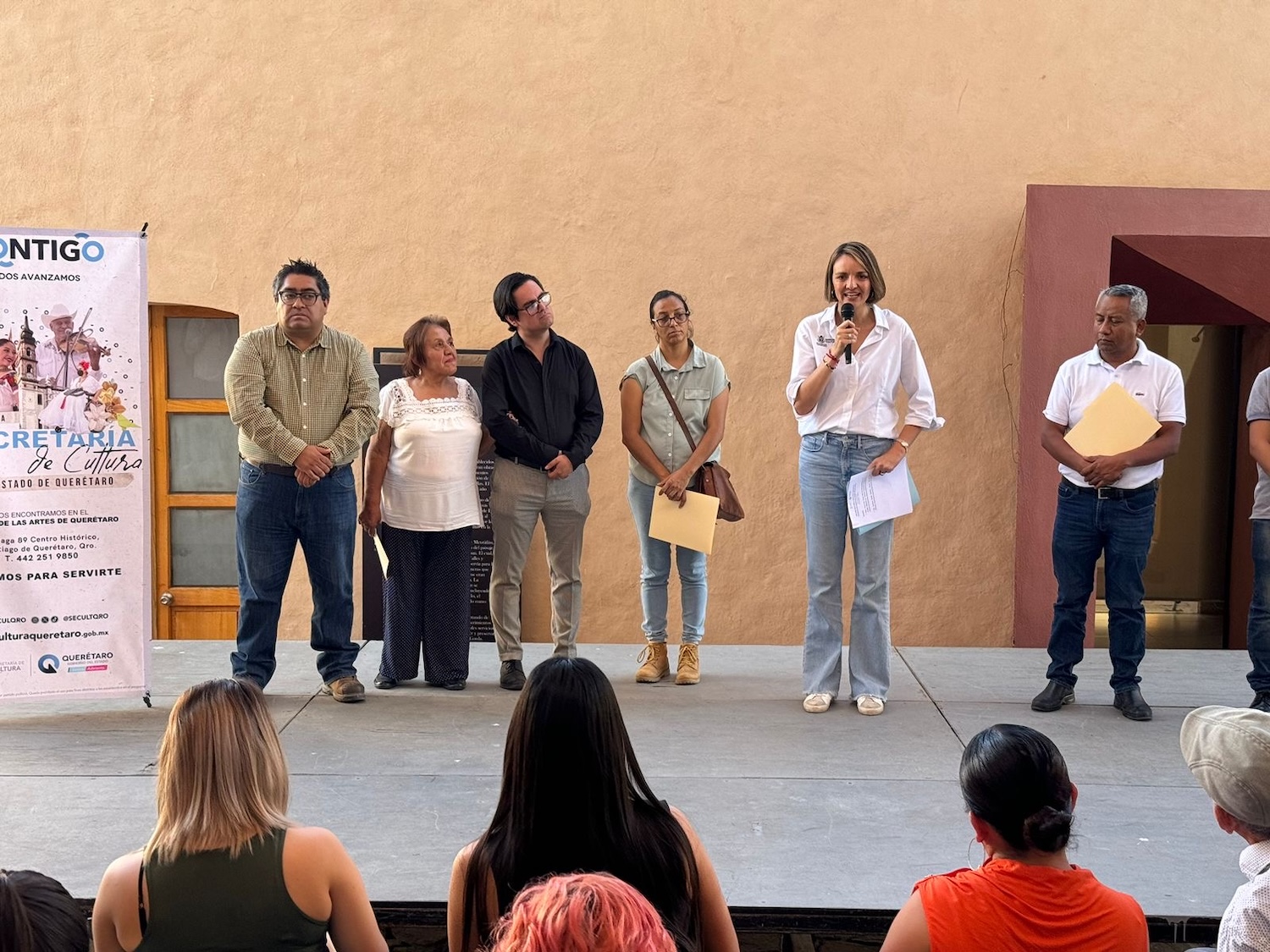 Al evento asistieron el Jefe de la Unidad Regional de Culturas Populares Indígenas y Urbanas de Querétaro, Óscar Ruiz; el director de Difusión y Patrimonio Cultural de la Secult, Gustavo Sánchez Rivera, y como representante de los beneficiarios del Pacmyc 2024, María Linda Reséndiz de la Cruz.