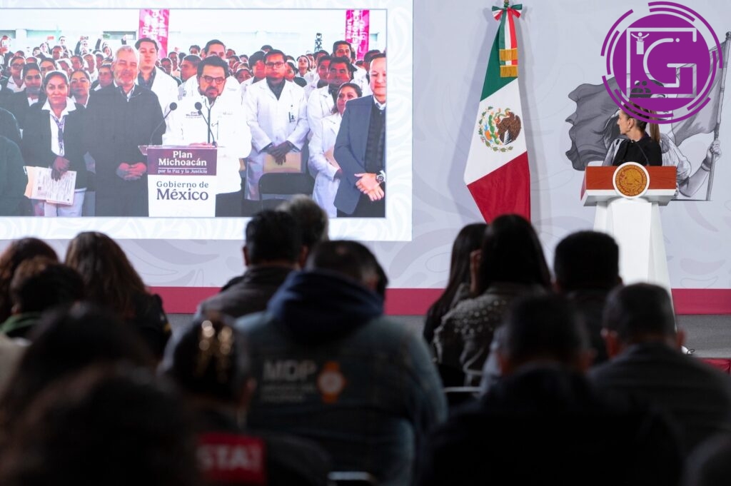 La presidenta encabezó la entrega de plazas base a personal médico y de enfermería como parte del Plan Michoacán por la Paz y la Justicia
